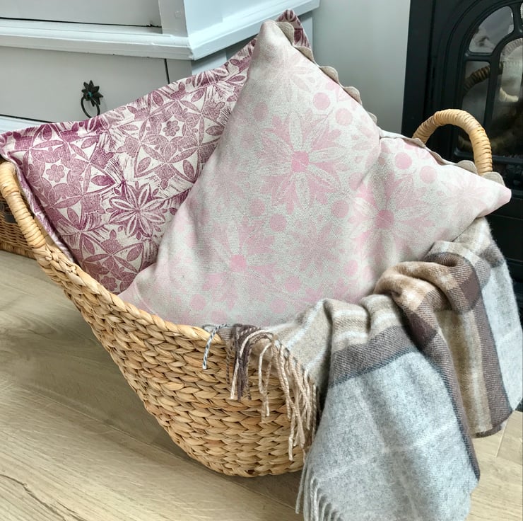 A beautiful hand printed Oblong Cushion, perfect for adding the finishing touch to your home