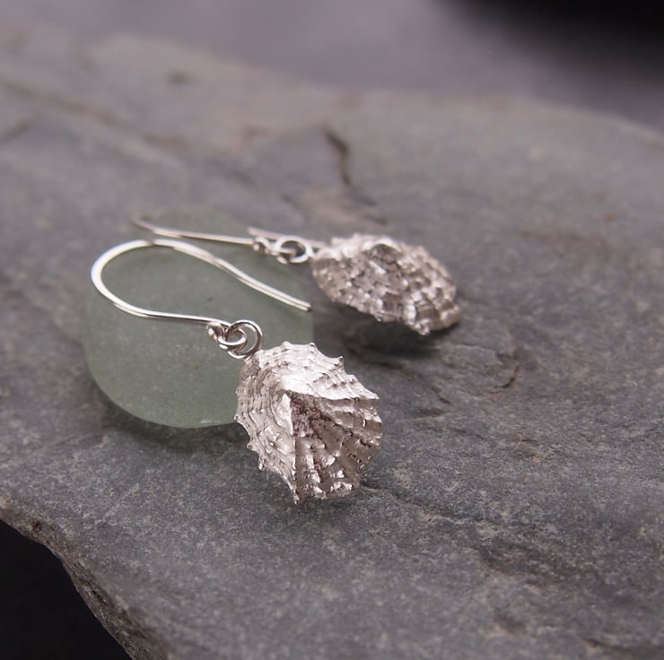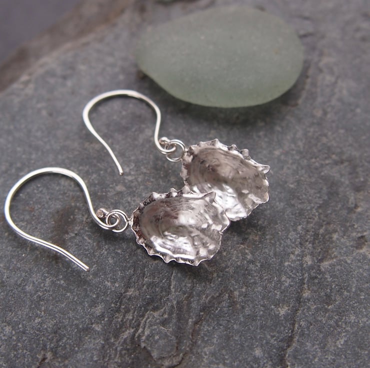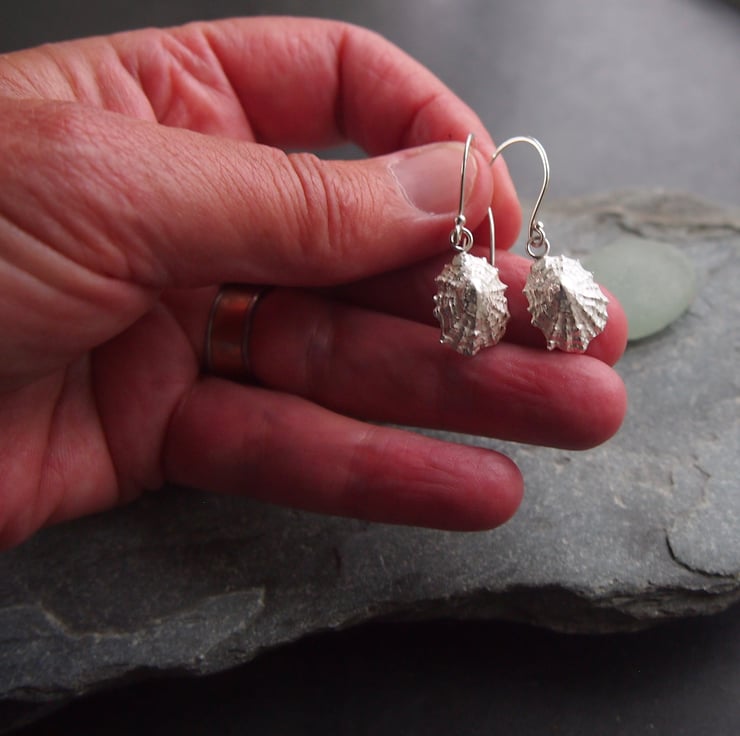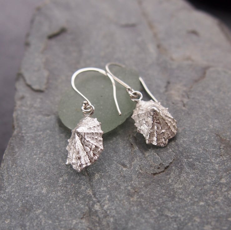 Little limpet shells have been cast from one found on our local beach and hung from hand made ear wires. The shells measure a little over a centimetre and the drop is nearly 2cm from the bottom of the wire. Beautiful texture and perfect in detail.
