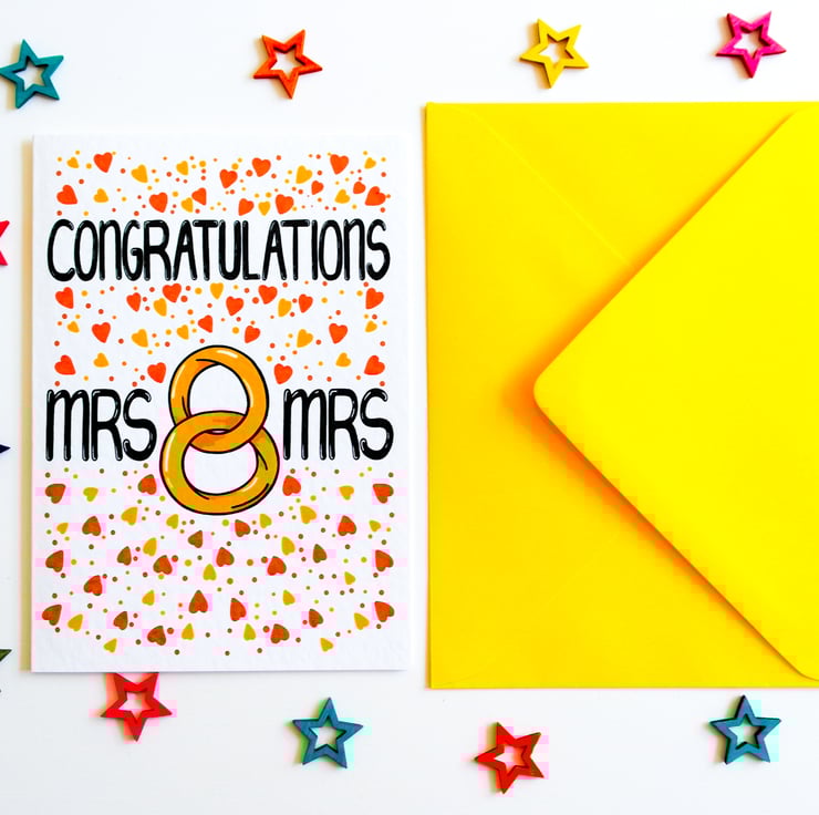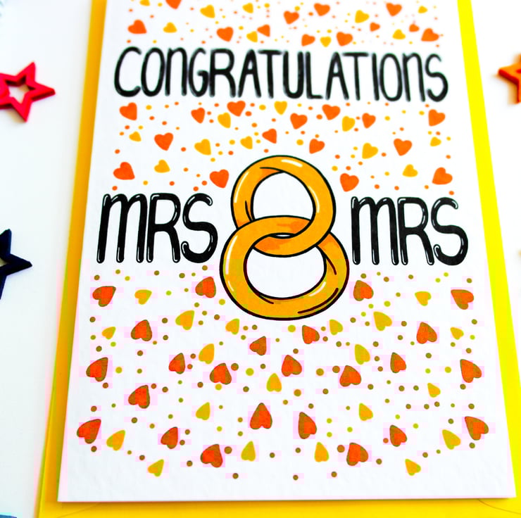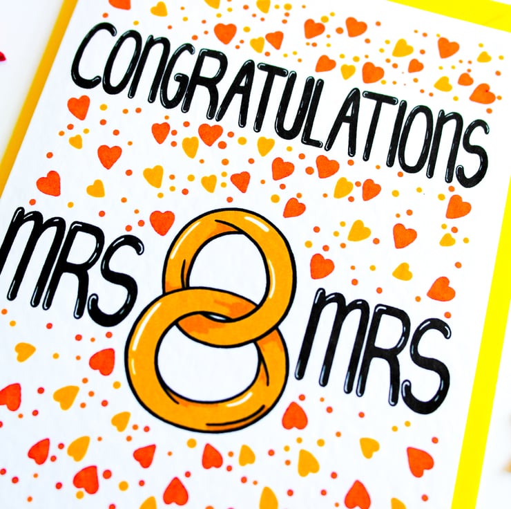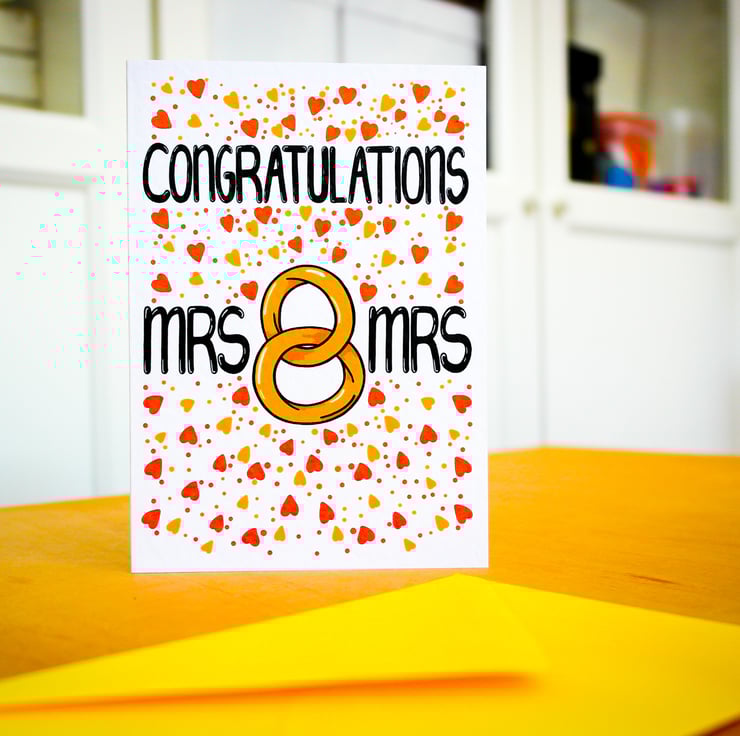 Greeting on front: CONGRATULATIONS MRS & MRS