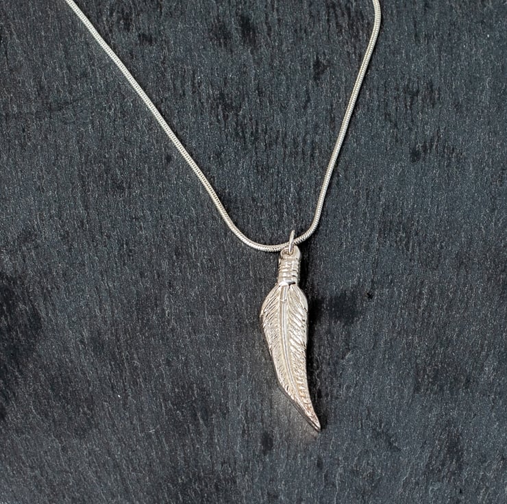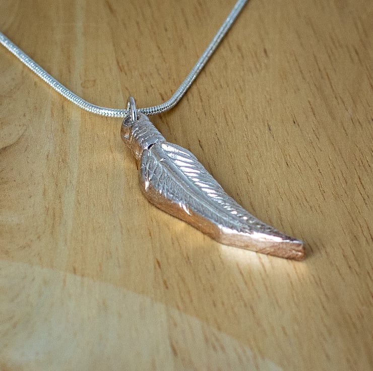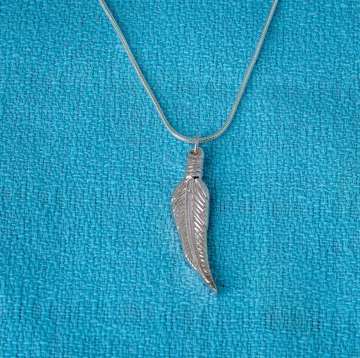 This feather pendant was handmade using silver clay with feather effect texture on it.