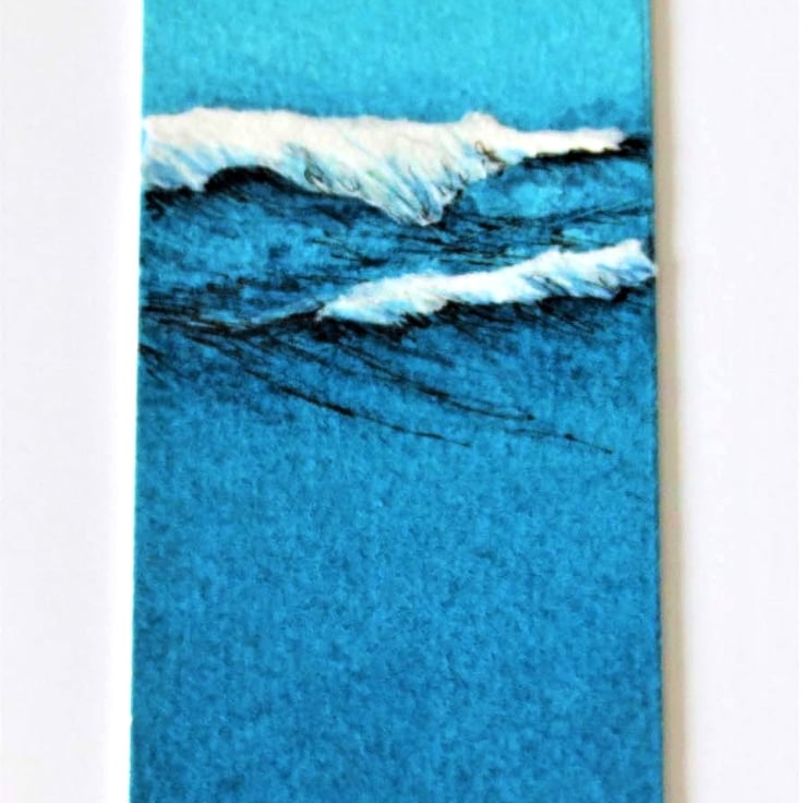An original handpainted watercolour greeting card of ocean waves racing to shore left blank inside for your own messege for the sailor or traveller in your life.