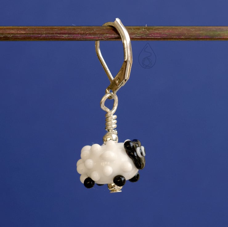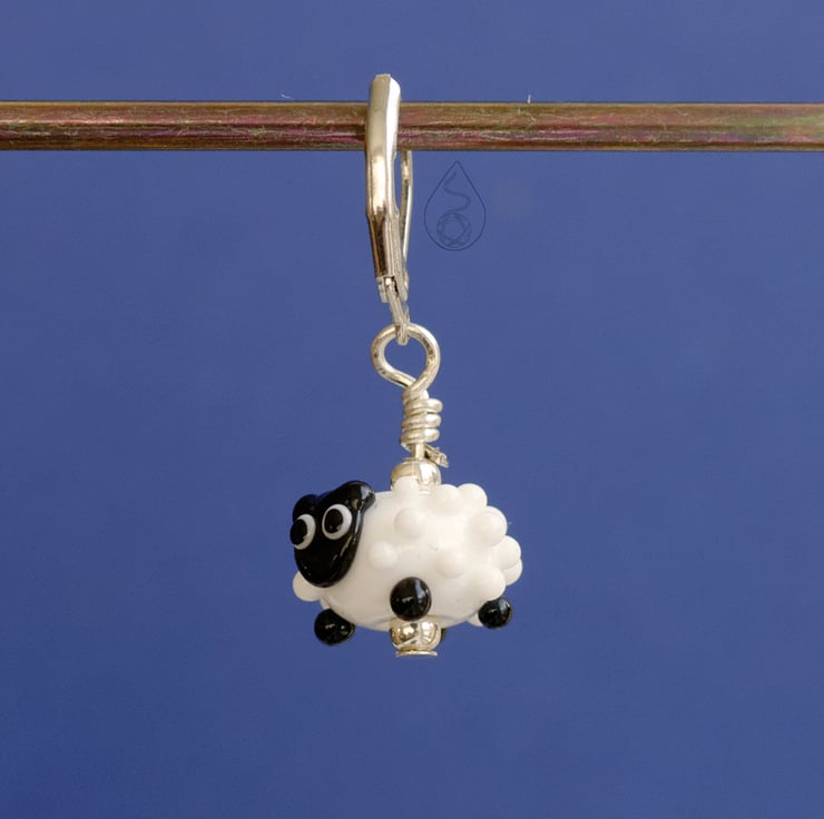 A tiny handmade glass sheep stitch marker. This one is white with black face and legs, much like the Suffolk breed of sheep which is always a favourite as I grew up and still live in Suffolk.