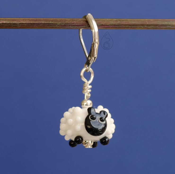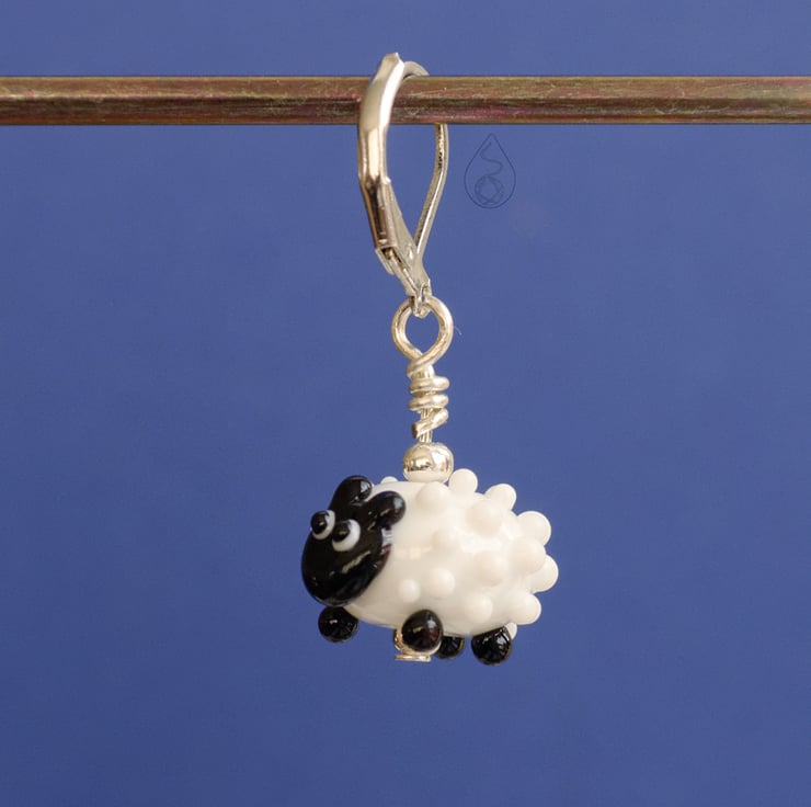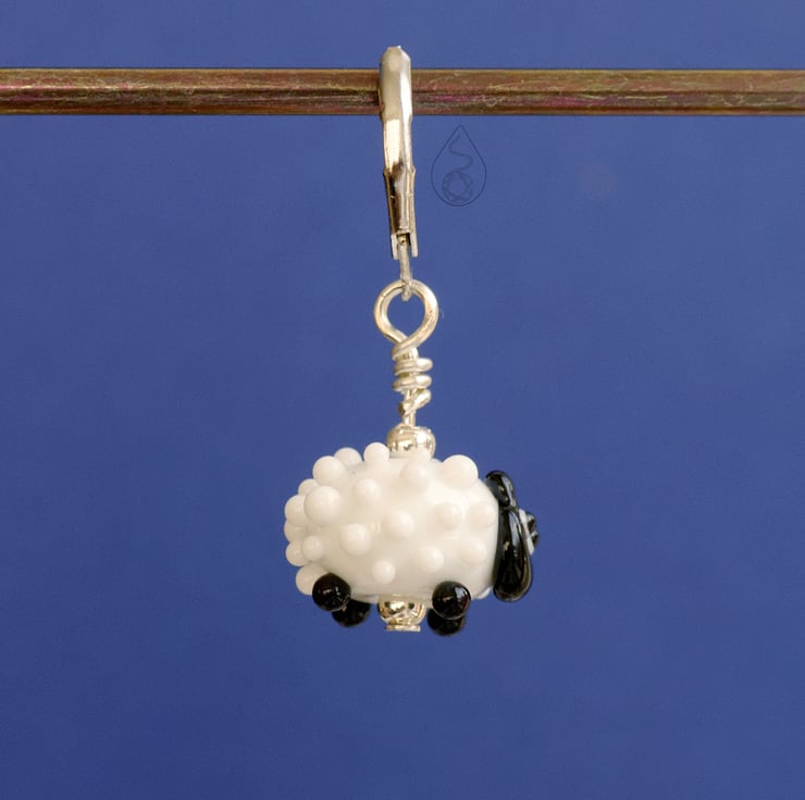 A tiny handmade glass sheep stitch marker. This one is white with black face and legs, much like the Suffolk breed of sheep which is always a favourite as I grew up and still live in Suffolk.