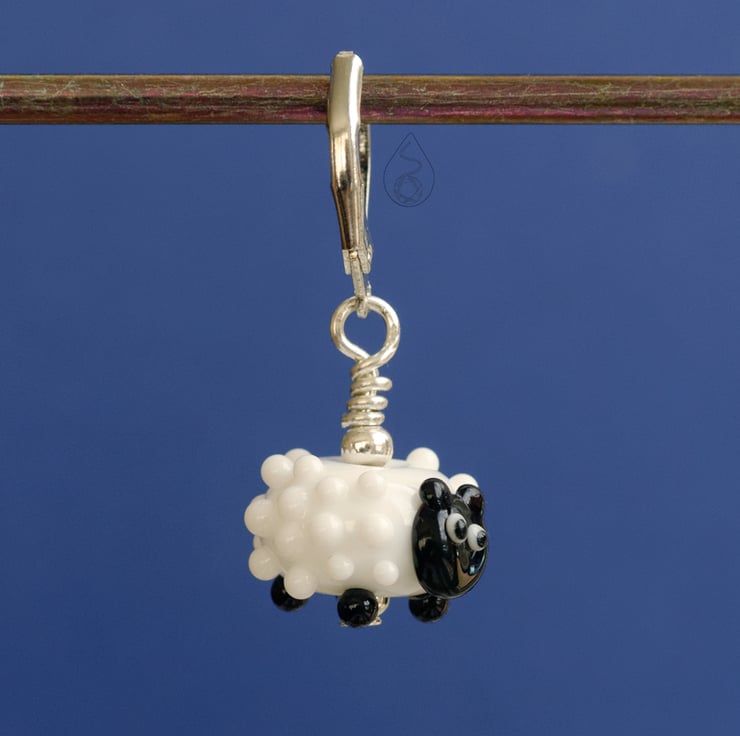 A tiny handmade glass sheep stitch marker. This one is white with black face and legs, much like the Suffolk breed of sheep which is always a favourite as I grew up and still live in Suffolk.