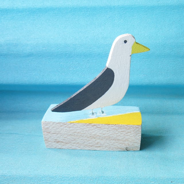 Hand painted and hand-carved seagull ornament.