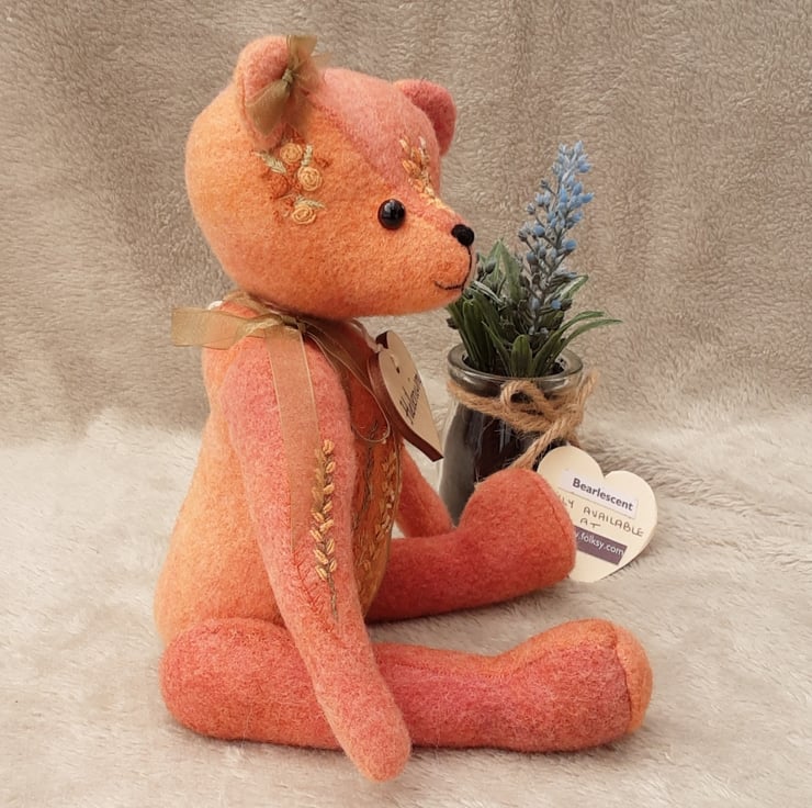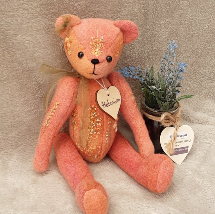 Helenium is a beautiful unique bear, designed as a keepsake gift to be enjoyed for many years to come. She would make a lovely gift for someone special or a unique addition for the teddy bear collector. My bears are designed as adult collectables only and are not suitable for children under 14.