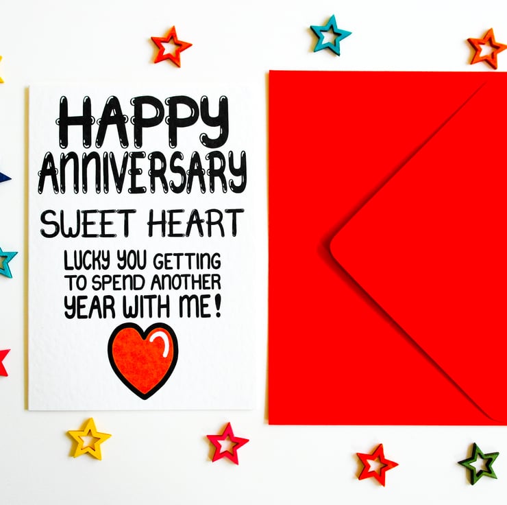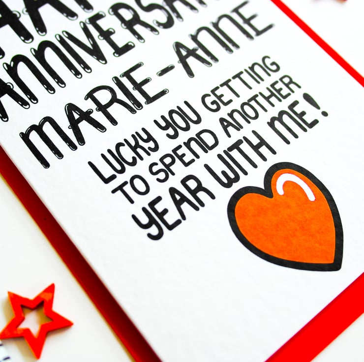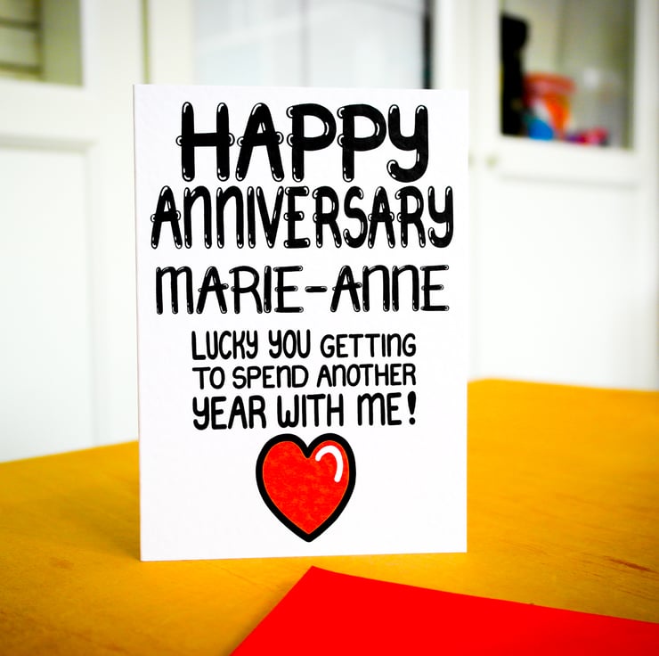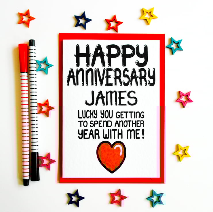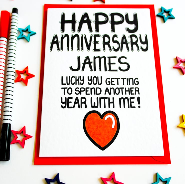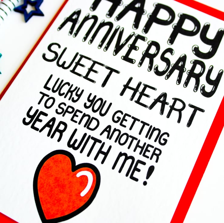 Greeting on front: HAPPY ANNIVERSARY (NAME) LUCKY YOU FOR GETTING TO SPEND ANOTHER YEAR WITH ME!