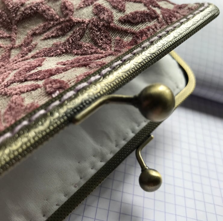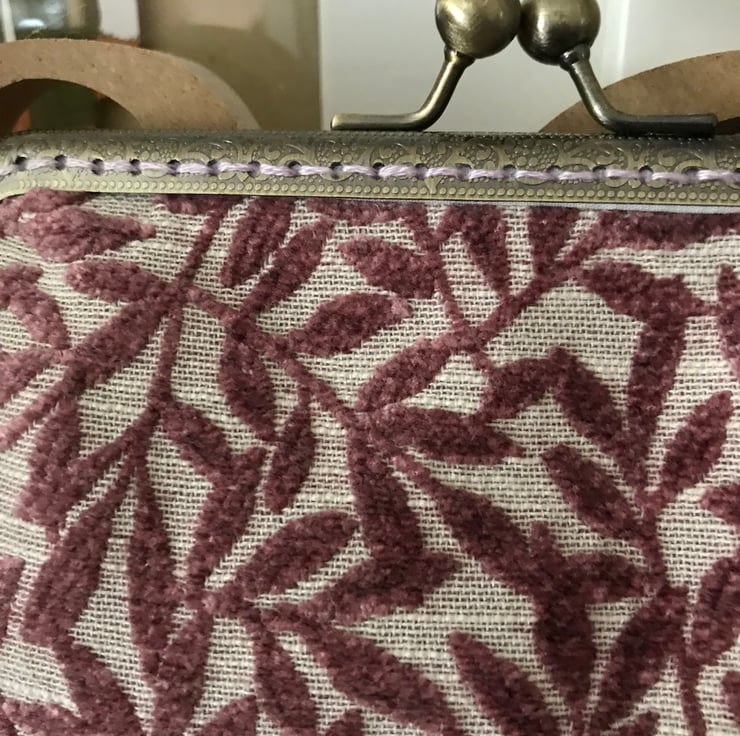 A beautiful clasp purse with a vintage feel about it. The fabric is a velour and just so soft and lush - I have limited amount of this fabric as it was from a sample "book" that was obtained from the supplier , via a recycle co. near me . I managed to get one purse out of all of the colours in the sample set . This one is a lovely shade of rose pink and has a cream cotton lining. It would look great for a evening out or a special occasion. It is set in a 15cm antique brass effect clasp frame and has been sewn in with a complimentary pink shade of thread. The measurements are 20cm at the widest point and 14.5cm deep.
