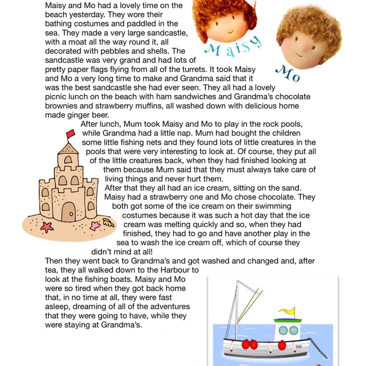 A full colour story book with 31 Summer stories about the Mulberry Green characters. Each story is just long enough for bedtime. Suitable for children 3-8 but enjoyed by anyone young at heart. Read about Maisy and Mo, Violet, Billy Spraggs and all of the other little characters in Miss. Davies’ class at Mulberry Green School.