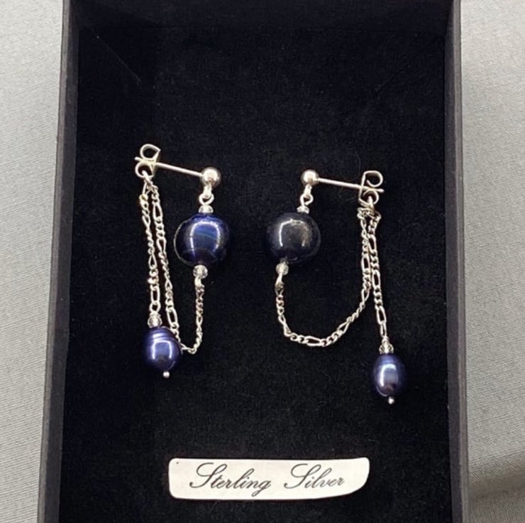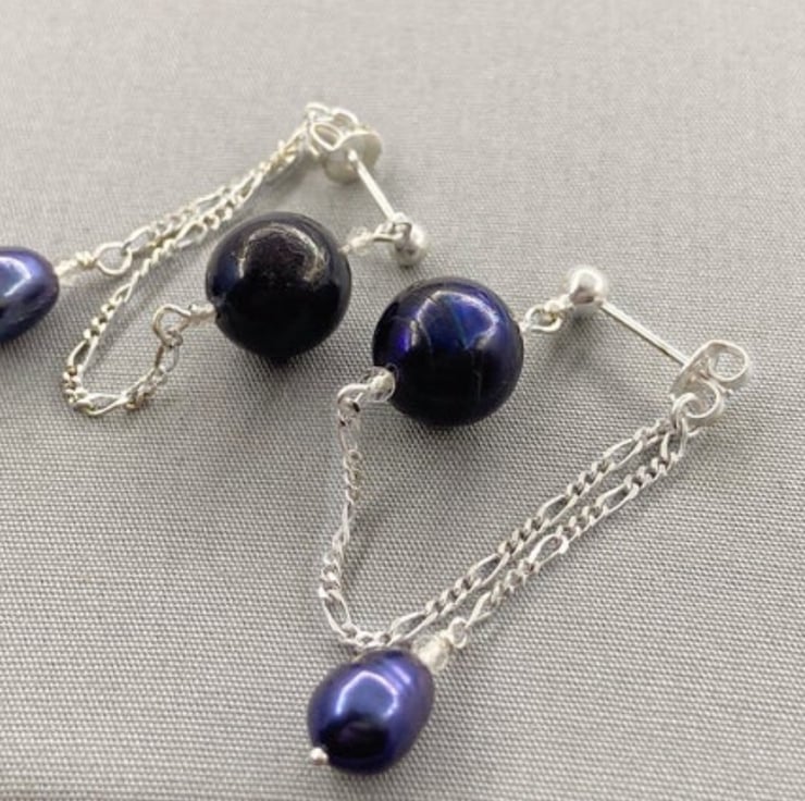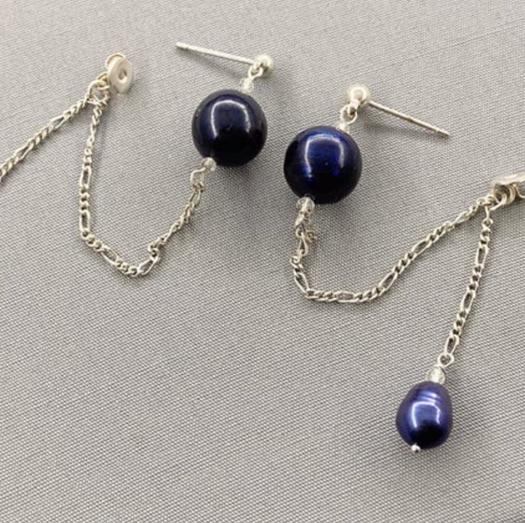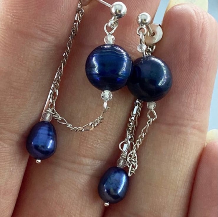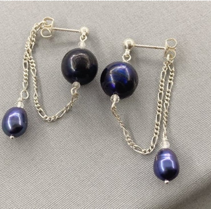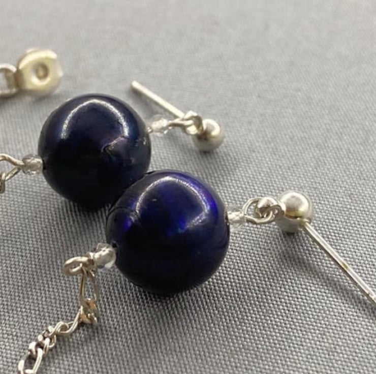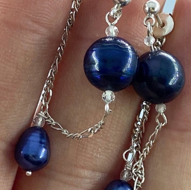 A pair of gorgeously dainty earrings which features midnight blue cultured pearls, micro faceted topaz and solid sterling silver.