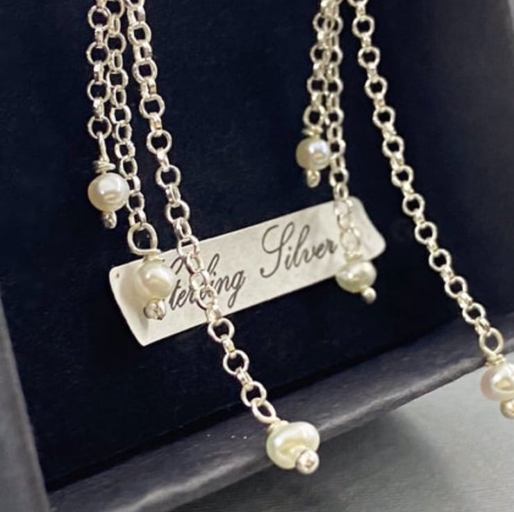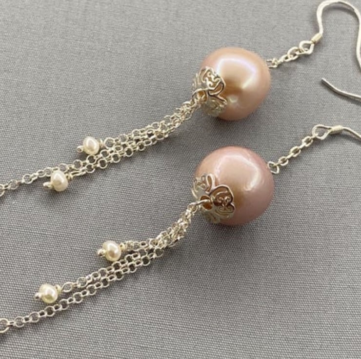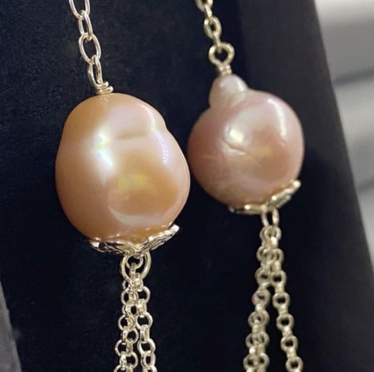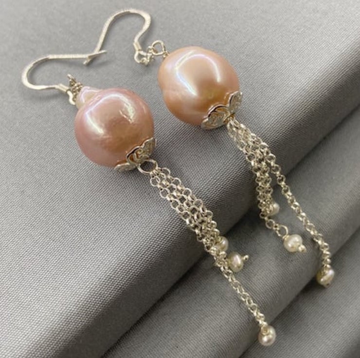 A beautiful pair of metallic baroque freshwater pearl waterfall drop earrings in solid sterling silver.