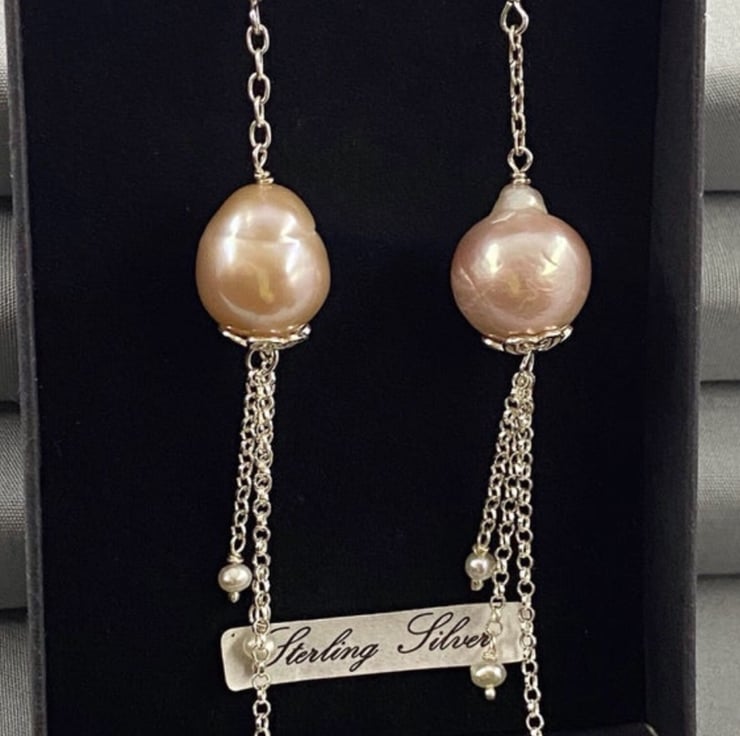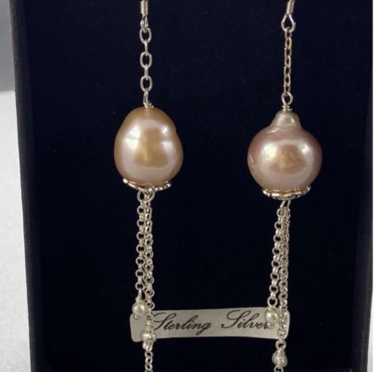 Natural Baroque Pearl Drop Waterfall Sterling Silver Earrings
