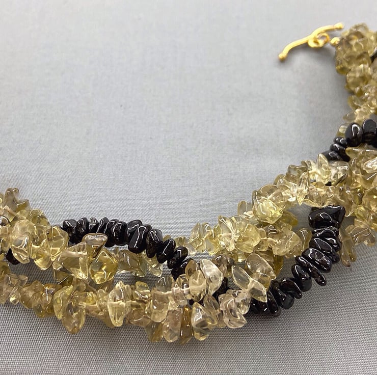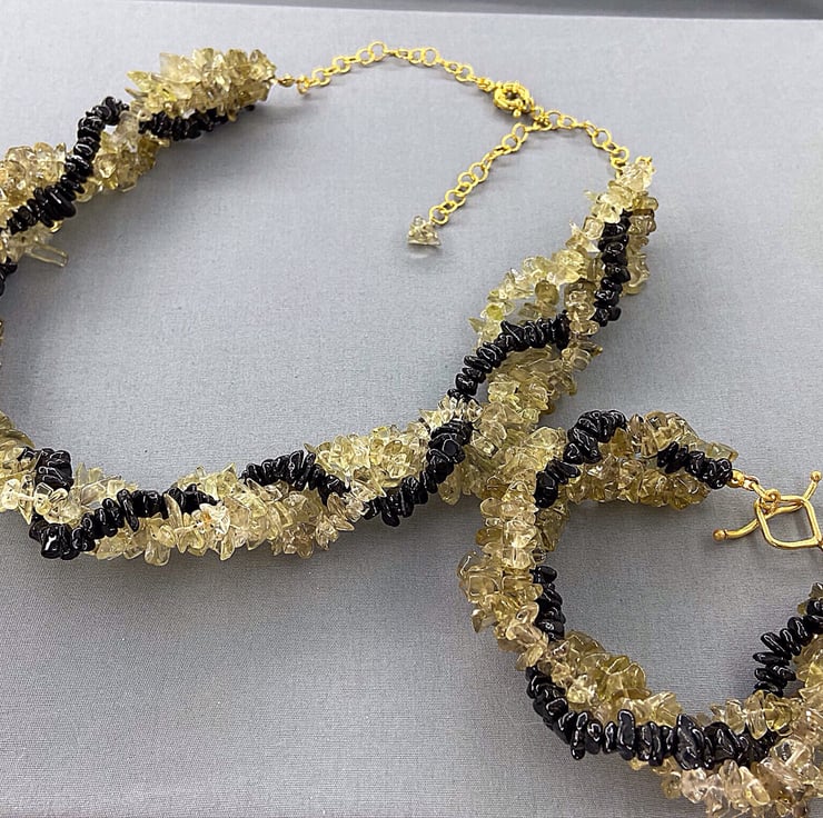 There is a matching necklace to complete the look, which you can find here - https://folksy.com/items/7804287-Lemon-Quartz%20&%20Black%20Spinel%20Twisted%20Rope%20Effect%20Choker%20Necklace