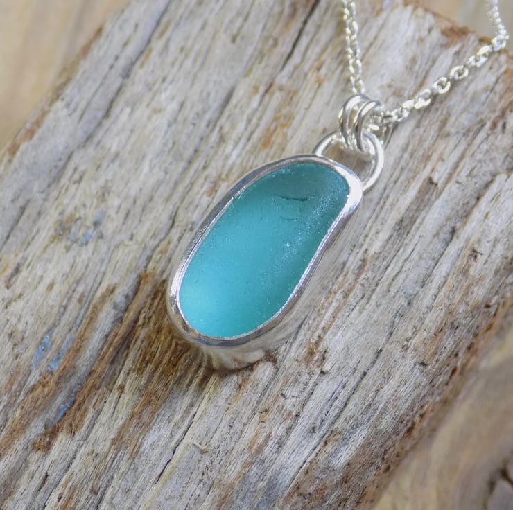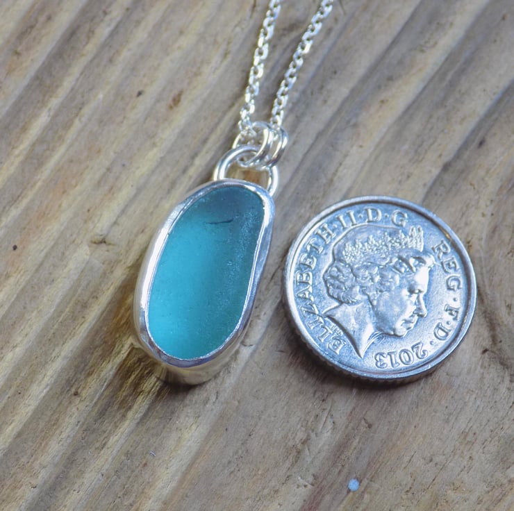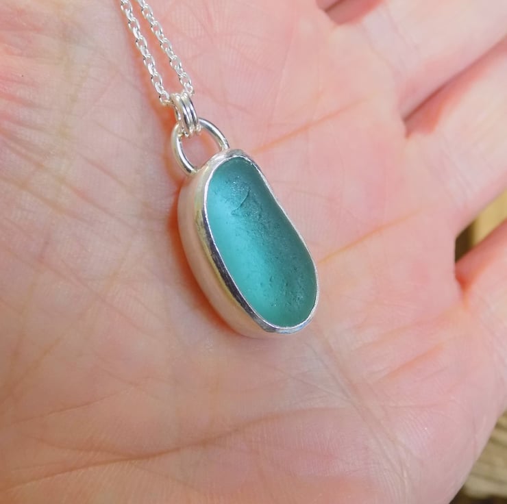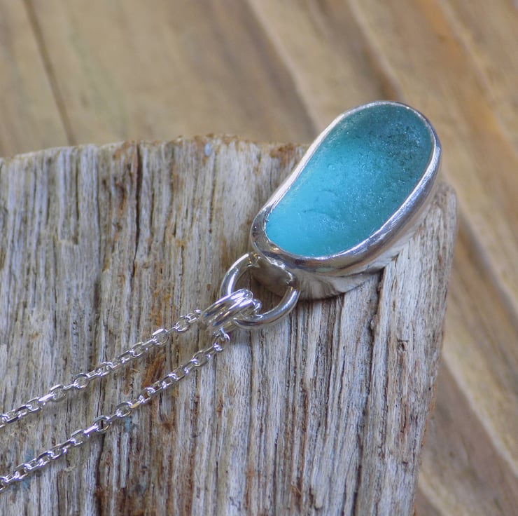 Made from sterling silver, fine silver and a pretty piece of aqua blue sea glass using traditional silversmithing techniques. Not a huge pendant so perfect for every day wear, if you love sea glass then this is a great little pendant ! Suspended from a diamond cut 18" sterling silver trace chain.
