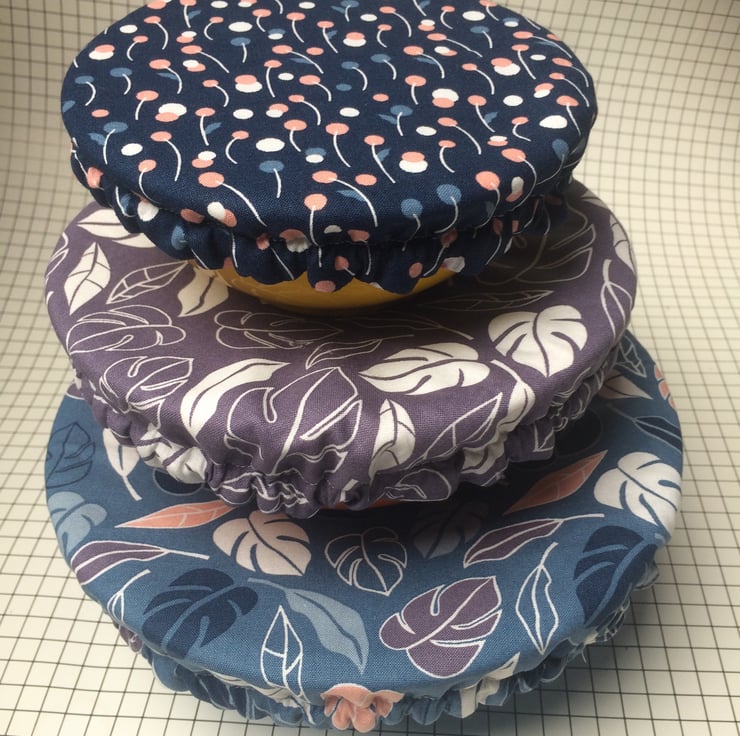 This set of 3 covers will fit bowls approximately 23cm, 19cm and 16cm (9", 7.5" and 6").