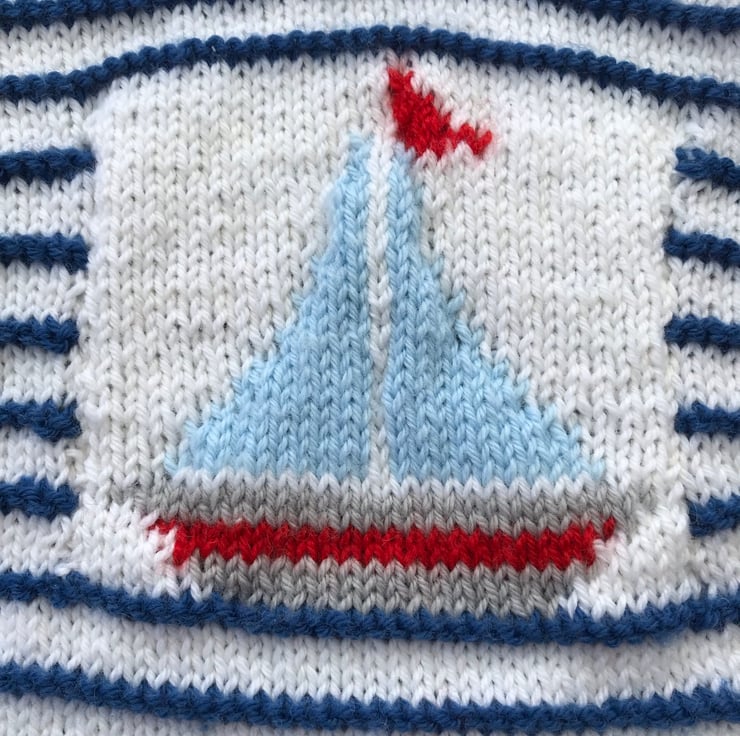 Nautical jumpers are always popular and I particularly liked this one with the sailboat picture. The luxury yarn was lovely to work with.