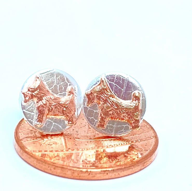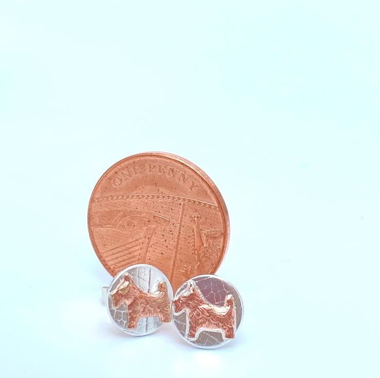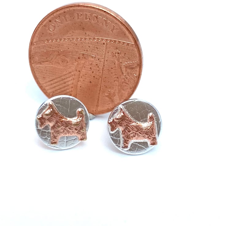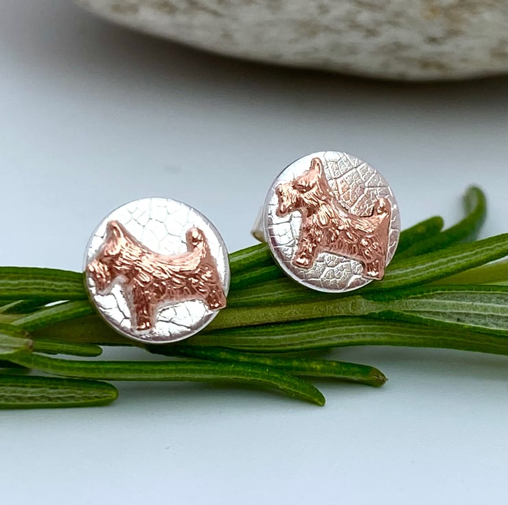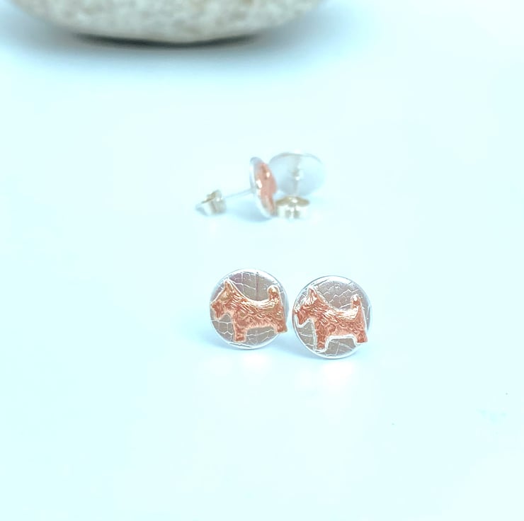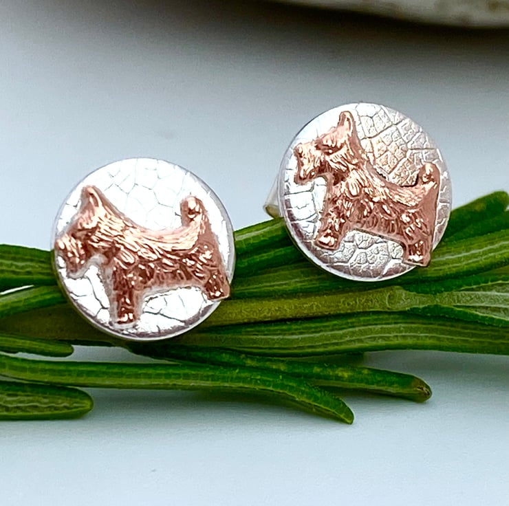 Westie or Scotty Dog Silver and Bronze Stud Earrings - silver, mixed metal handmade studs.