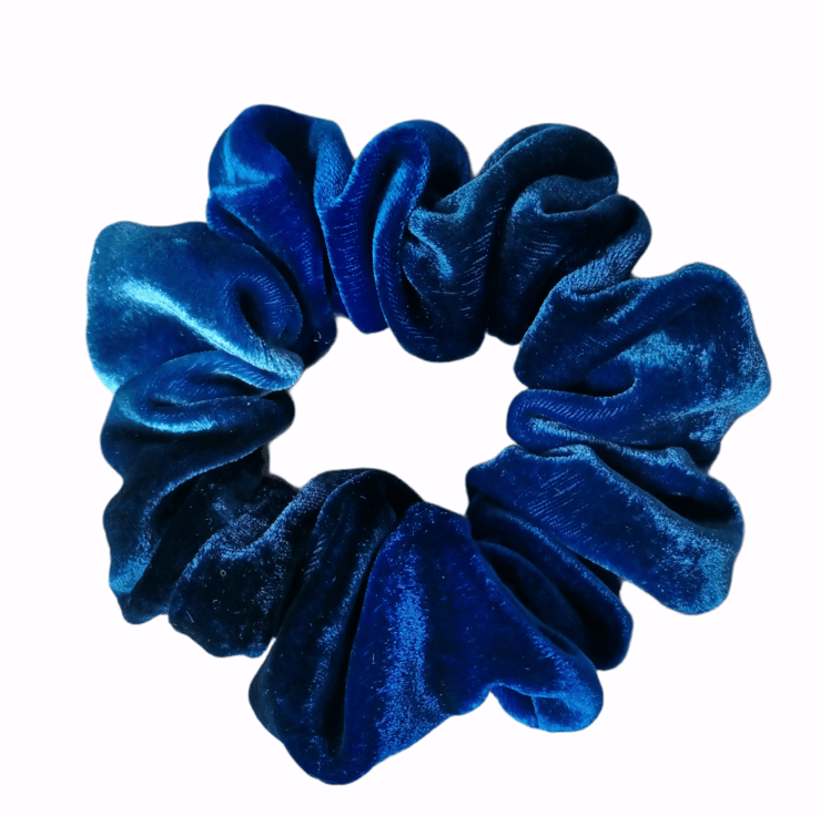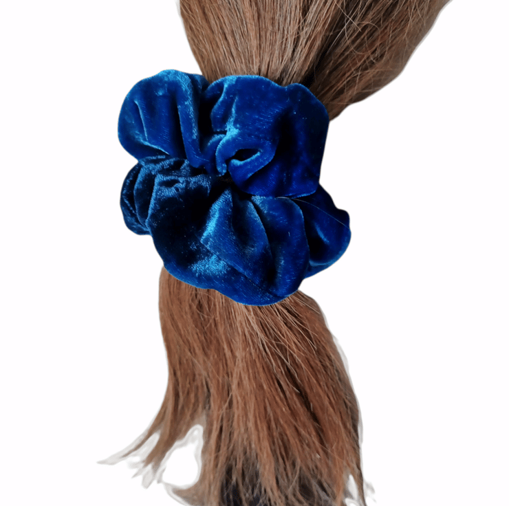 A large sumptuous hand painted scrunchie/hair elastic. The velvet is 18% and 82% viscose painted with procion dyes, colourfast fixed by steaming.