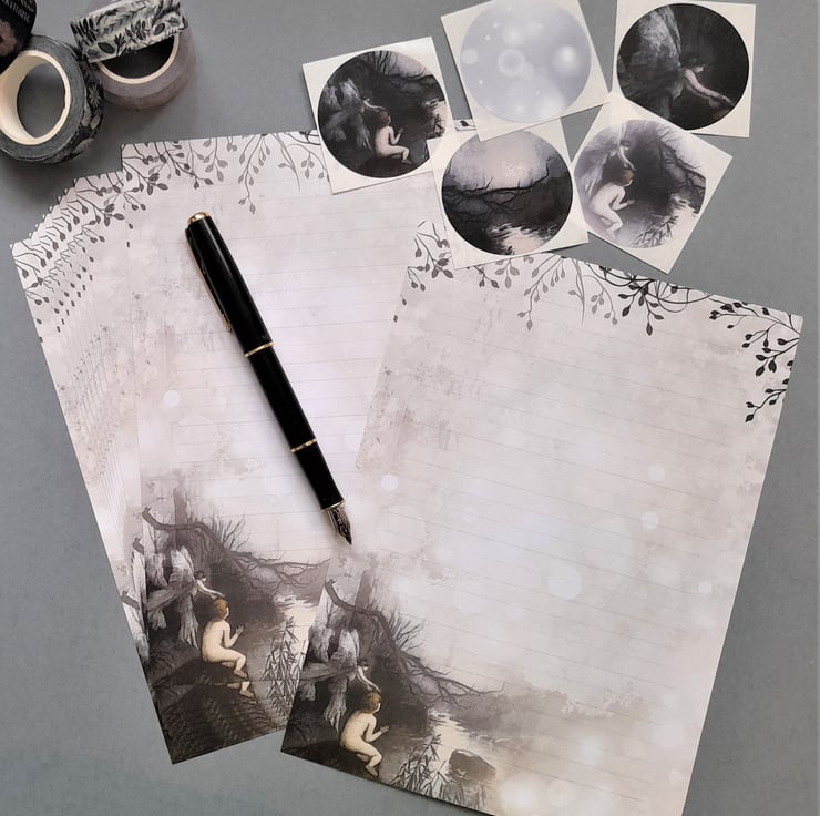 A set of 10 sheets of A5 size handmade letter writing / notepaper set based upon the wonderful illustrations of The Water Babies, by Warwick Goble, which I have added to in order to create a collage.