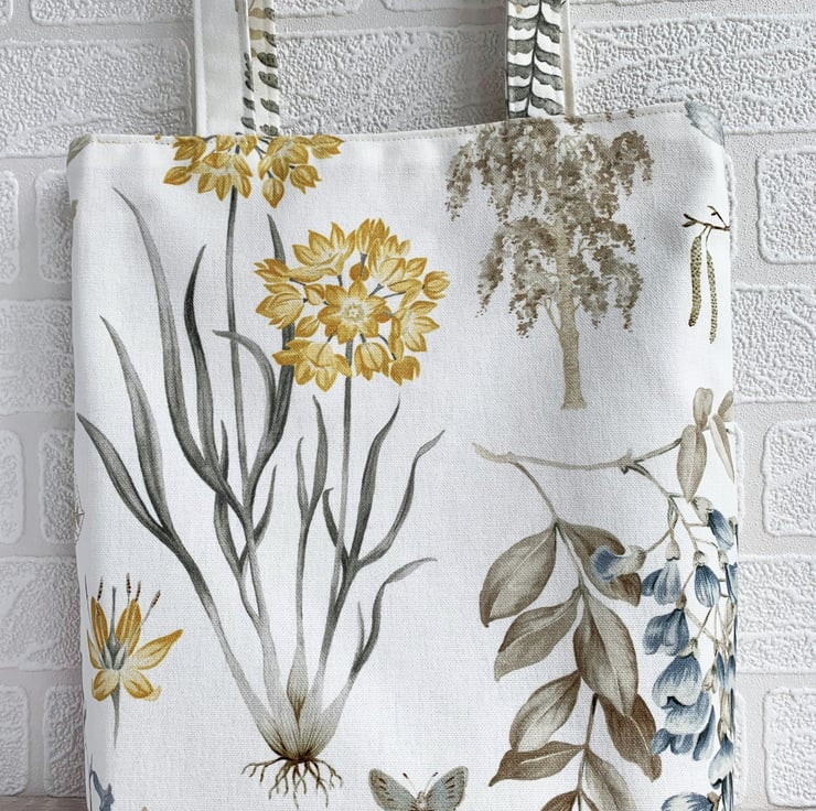 This tote bag is very versatile - perfect for use as a shopping bag, handbag or occasional bag. It can be easily folded and placed inside a handbag. With its delightful botanical print, it would make a lovely gift, particularly for anyone who loves wildlife and nature.