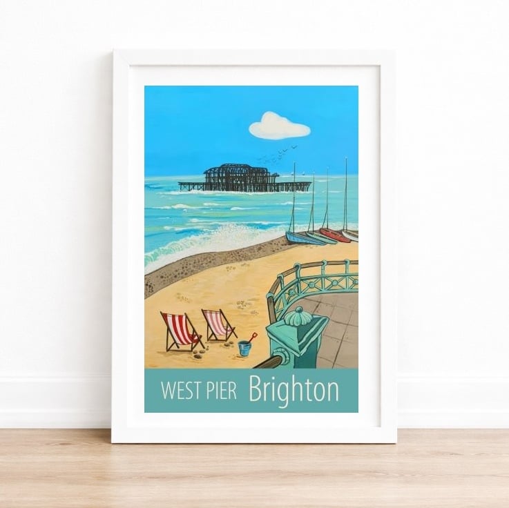 A contemporary travel poster style print of Brighton's West Pier, from my own original acrylic painting. A perfect gift for those who love Brighton!
