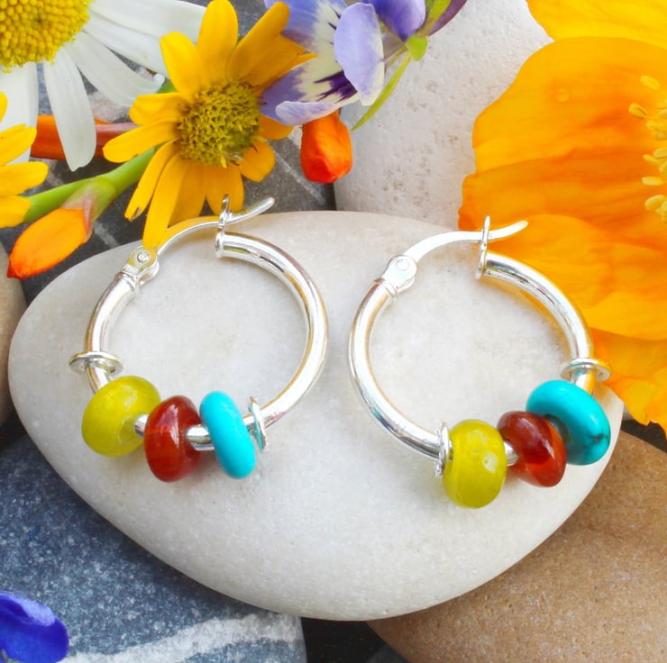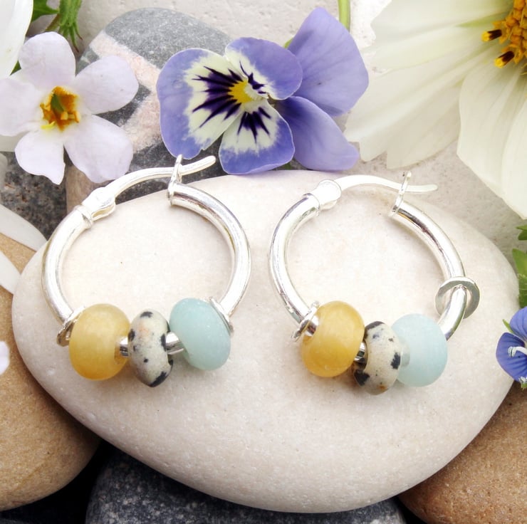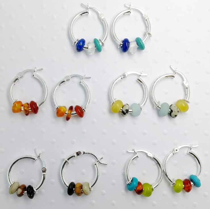 If purple stones aren't your thing then we also offer a choice of similar earrings that feature, No.1 light Carnelian, Baltic Amber, dark red Carnelian, No.3. Amazonite, Dalmation Jasper and Calcite, No.4. Serpentine, Carnelian and Turquoise.