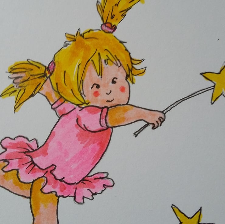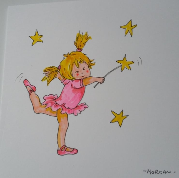 6" X 6" 250 gsm white blank card with an original hand painting of a little girl
