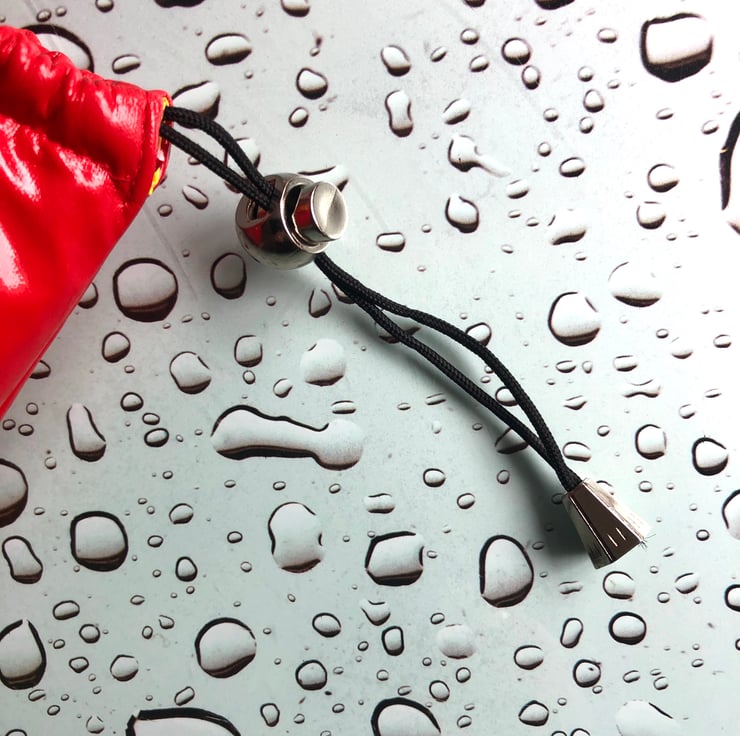 This is a very useful little bag to have around for those all too frequent rainy days. Holding a straight handled small umbrella it can be popped in a tote bag and the wet umbrella can be placed inside it whilst you shop. Just turn it inside out when you get home for the waterproof lining to dry.