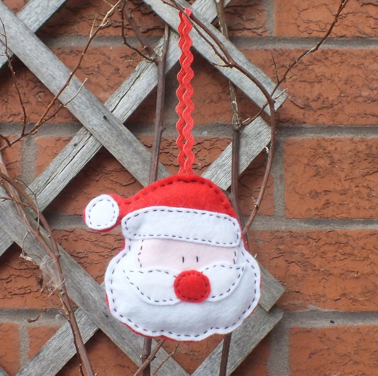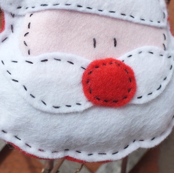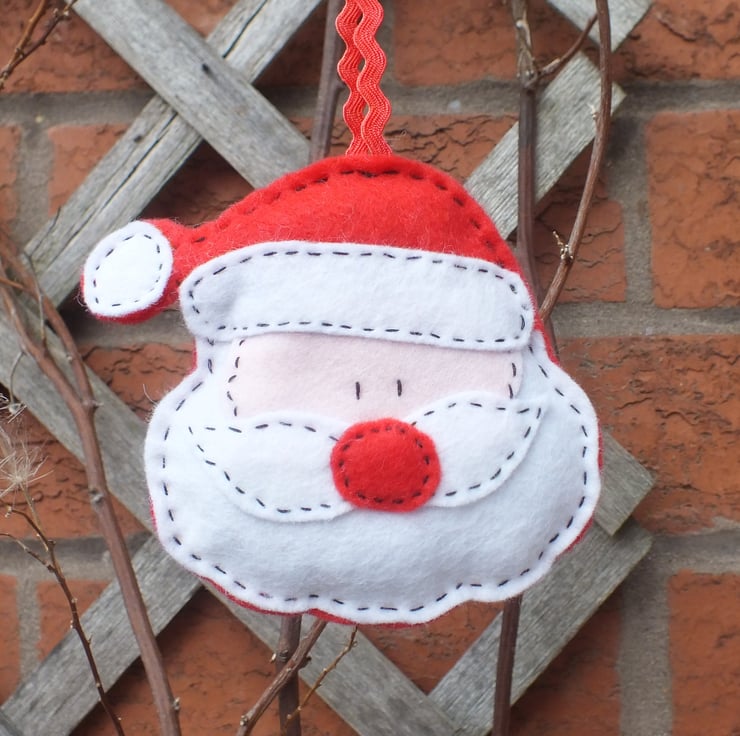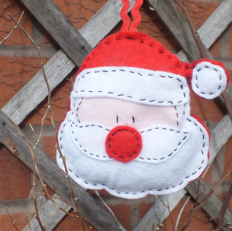 This is a hand sewn felt Father Christmas, Santa Claus decoration which could be hung on your Christmas tree or around your home. The price is for one decoration.