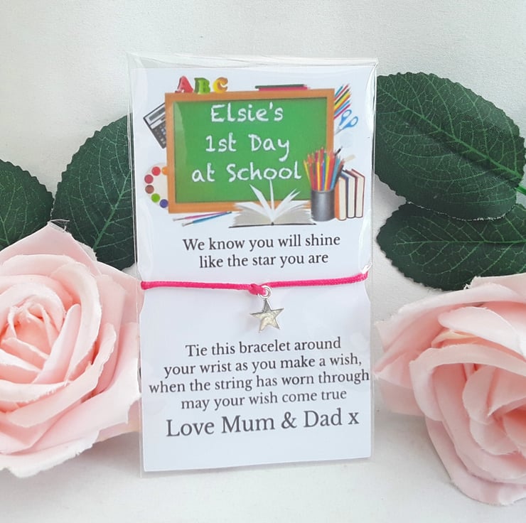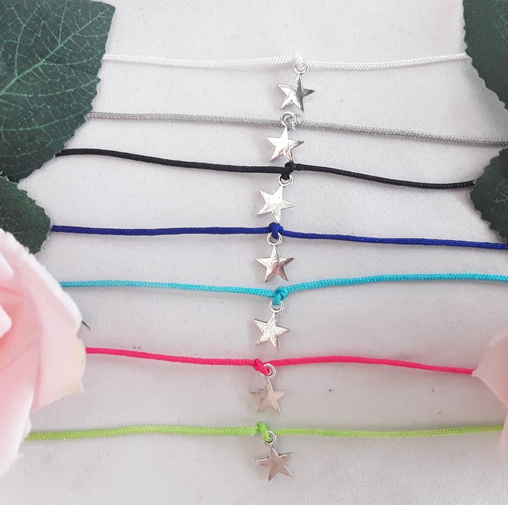 Coloured satin cord bracelet with silver star charm with display card and cellophane sleeve