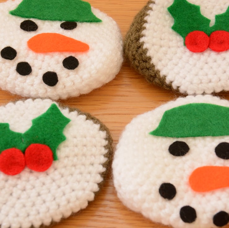 Hand crocheted set of 2 Christmas pudding and 2 Snowmen chocolate orange (or bath bomb) covers. Perfect stocking filler, teachers gift, table place setting or just fun to have around the house during the festive period.