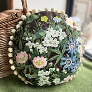 Her body is made from wool felt stuffed with polyester filler and her head is wired. Her clothes are made from sparkly brocade, velvet and tulle.