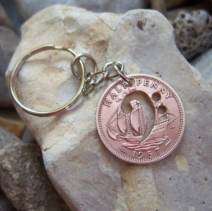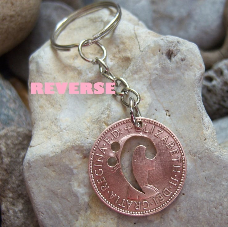 This is the only item section that I have that the fitting, in this case the metal keyring mechanism itself, is NOT sterling silver. Please specify if you would like the keyring/chain as shown or the antique copper colour as shown in the last photo (N.B. this is not the same colour as the bronze coin)