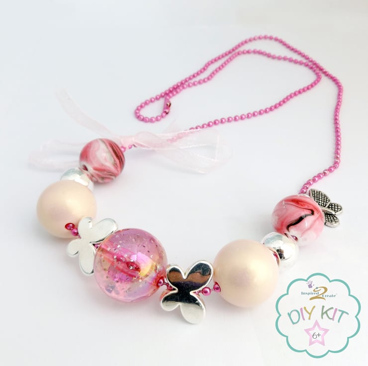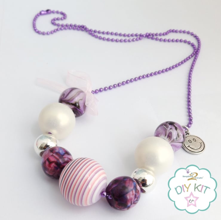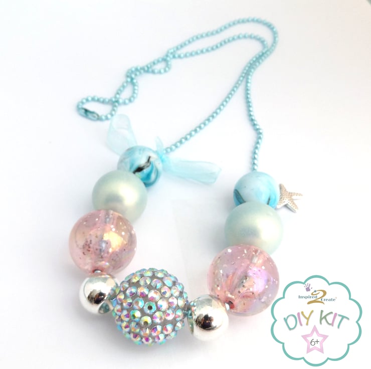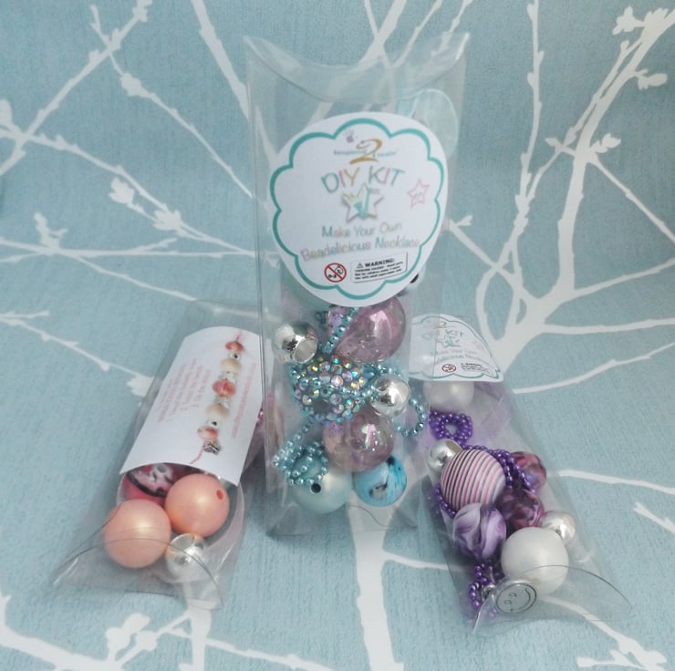 DIY Necklace Kids Craft Kit, make your own chunky bead necklace in pastel colours