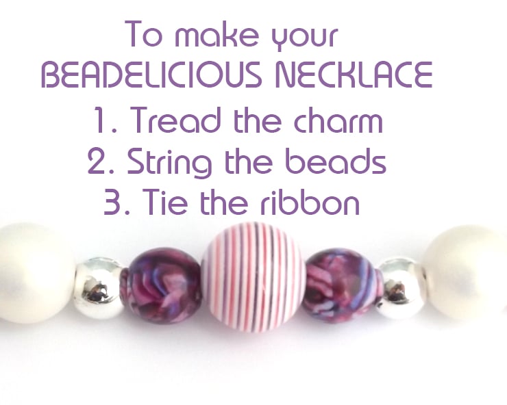Simply thread the charm and the beads onto the chain and finish off your necklace by tying a pretty bow.