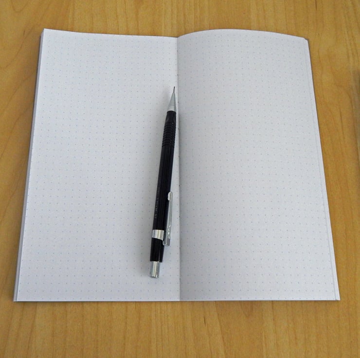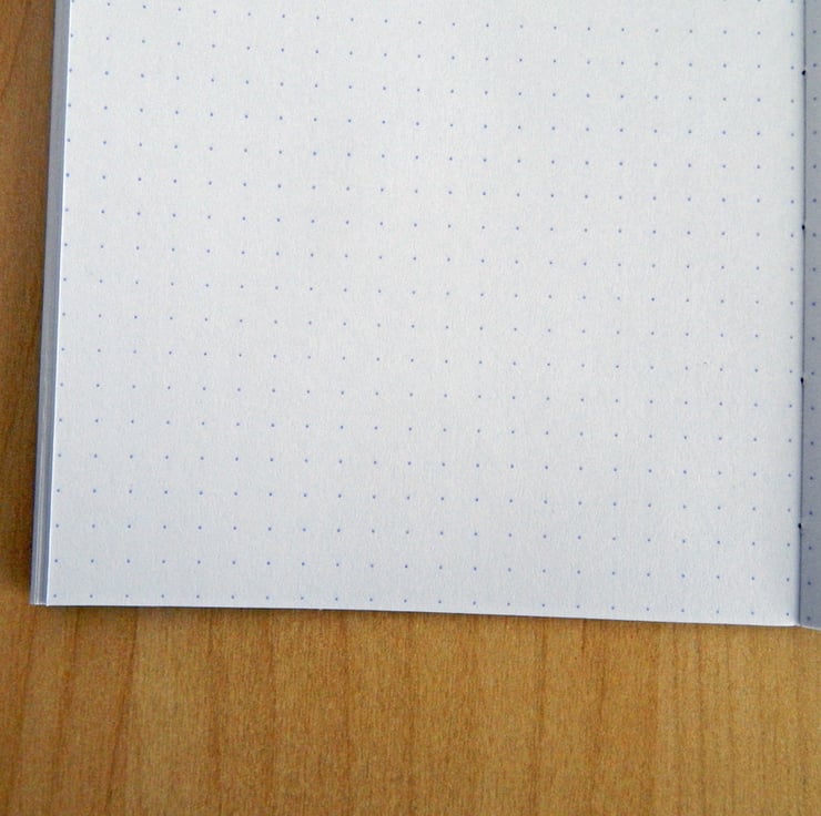 - It contains 30 pages (60 sides) of 90gsm good quality white paper with a dotted 5mm grid in grey. The paper is suitable for pencil, pen, ink and all dry media.