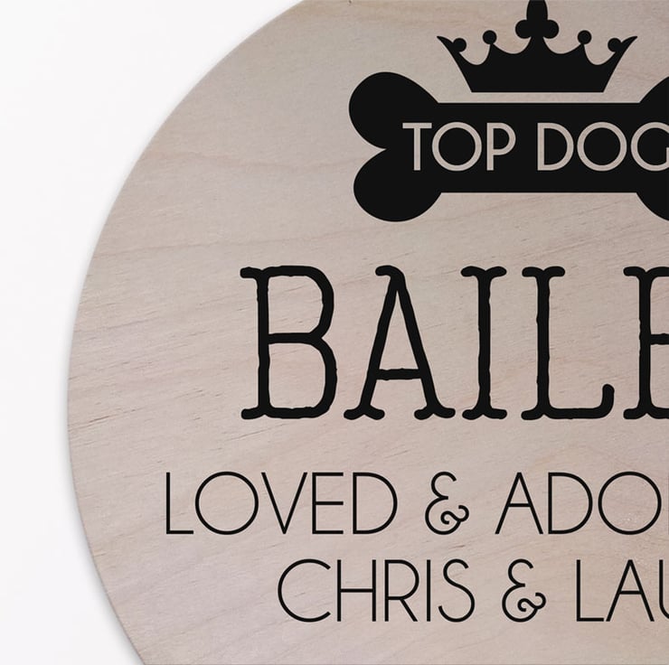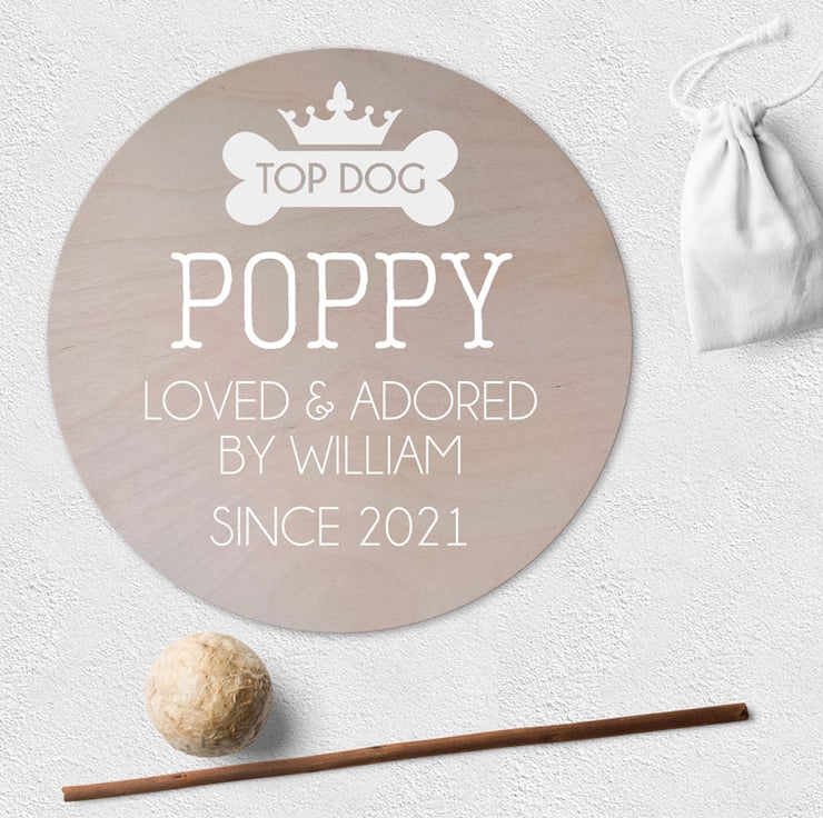The sign features the wording ‘Top Dog’, and ‘loved and adored by’, along with the date your dog joined the family. Add your pet’s name and your family name (or individual, or couple's names) for a lovely personalised dog owner’s keepsake.