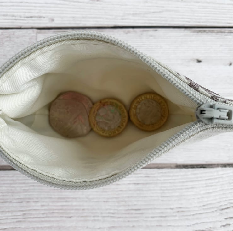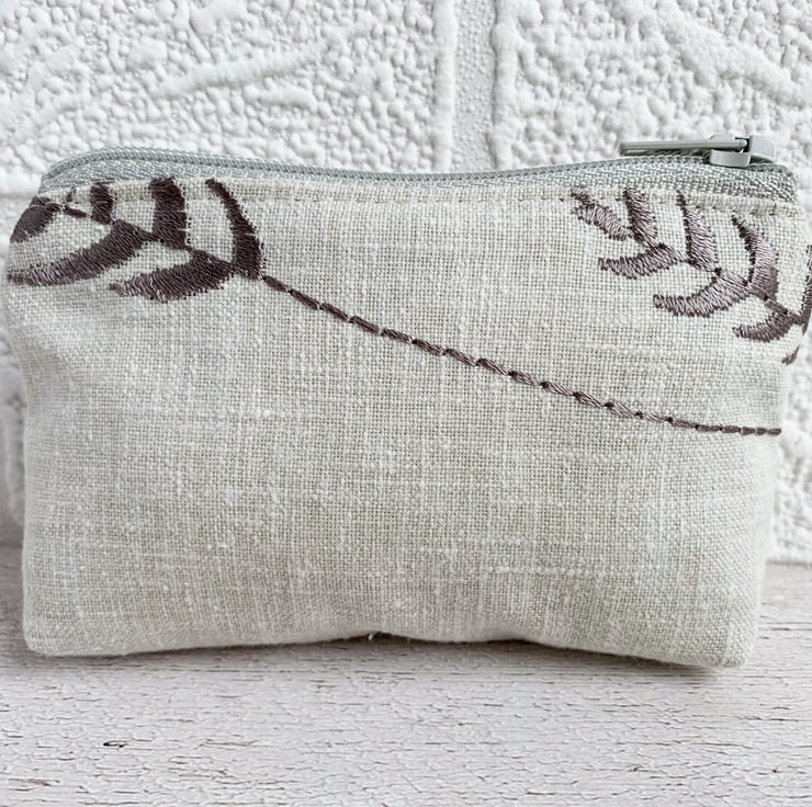 This stylish little linen-look coin purse will fit into the smallest of handbags but is just large enough to hold cash and a bank card and would also hold a lipstick. With its beautiful embroidered floral pattern, it would make a lovely gift.