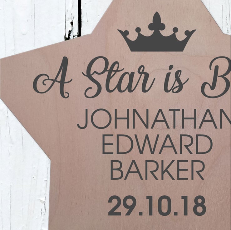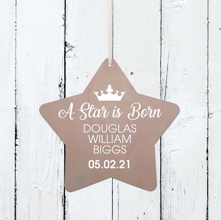 A Star is Born! This star shaped wooden hanging plaque is a lovely gift for new parents, to welcome a newborn, or a unique and charming christening gift idea. The stylish, contemporary design makes it a lovely addition to the baby’s new nursery.