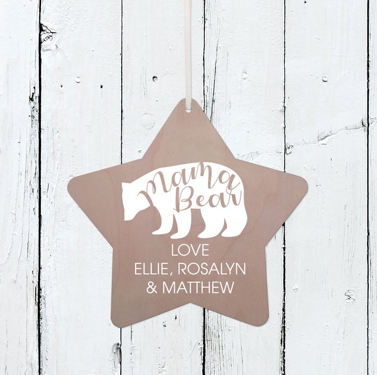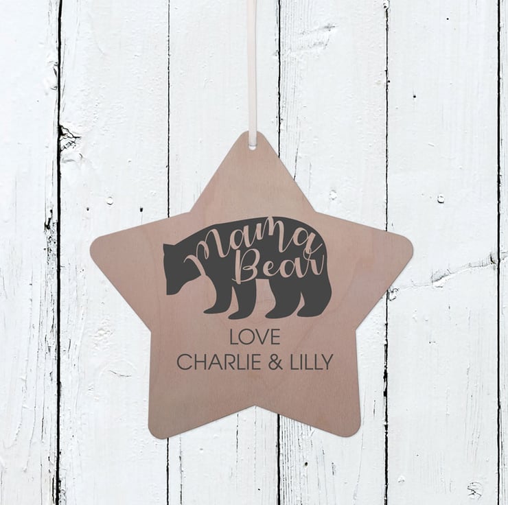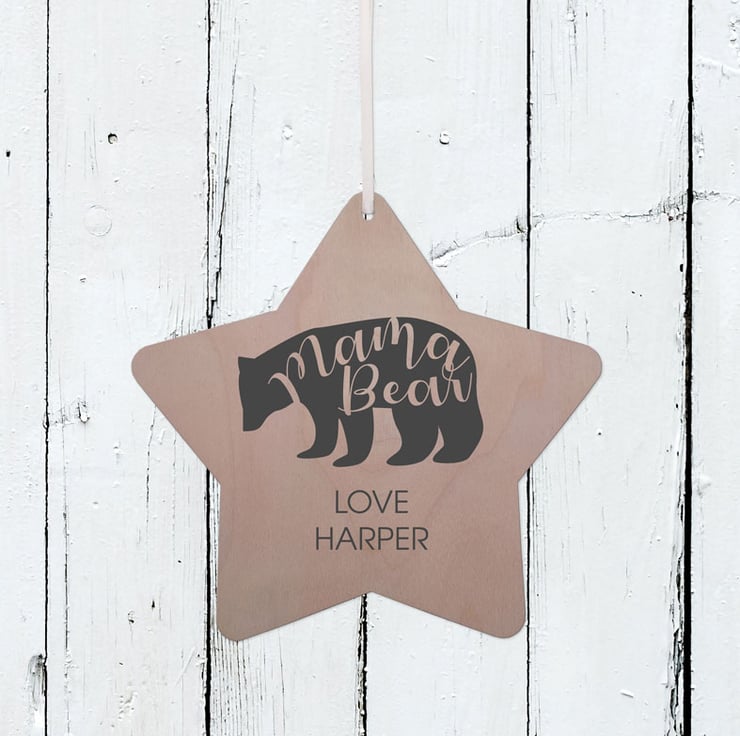 This star shaped wooden hanging decoration will make a delightful gift for your mum - perfect for her birthday, for Christmas, or a unique Mother's Day gift.