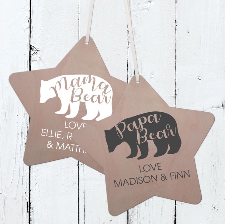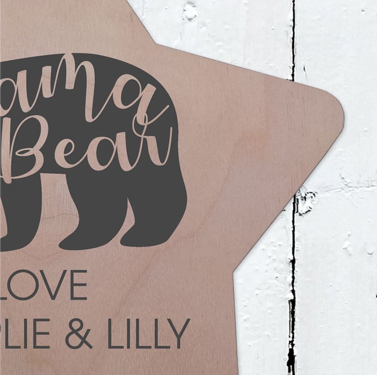 This stylish, contemporary design star plaque features the words 'Mama Bear' and 'Love', and is personalised with the senders name(s). Available in a choice of 2 beautiful neutral colours: charcoal grey or white.