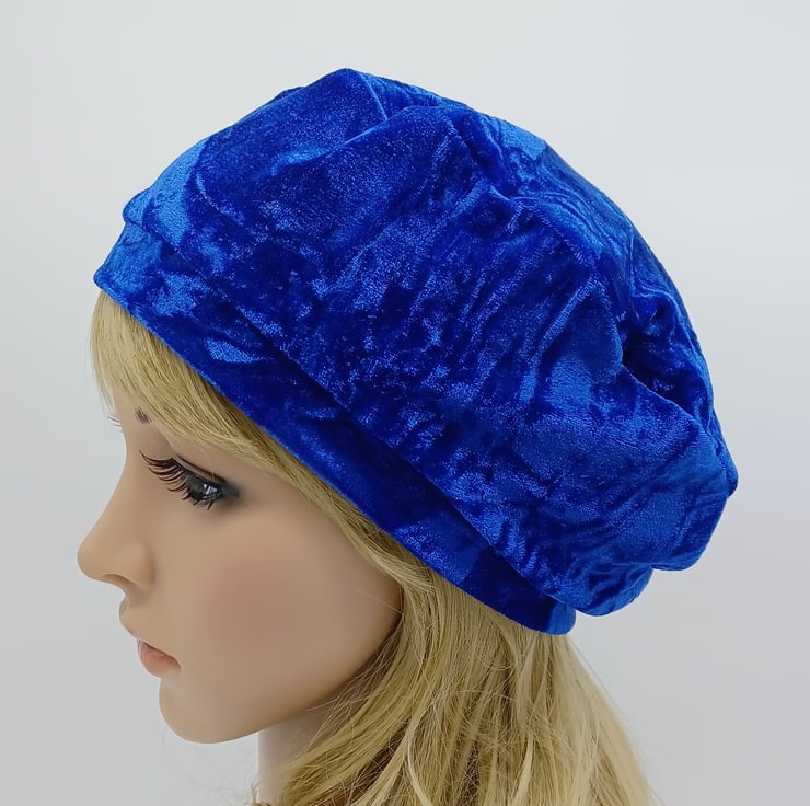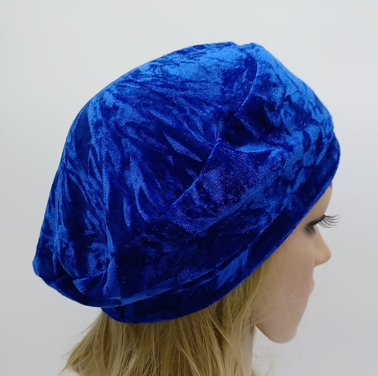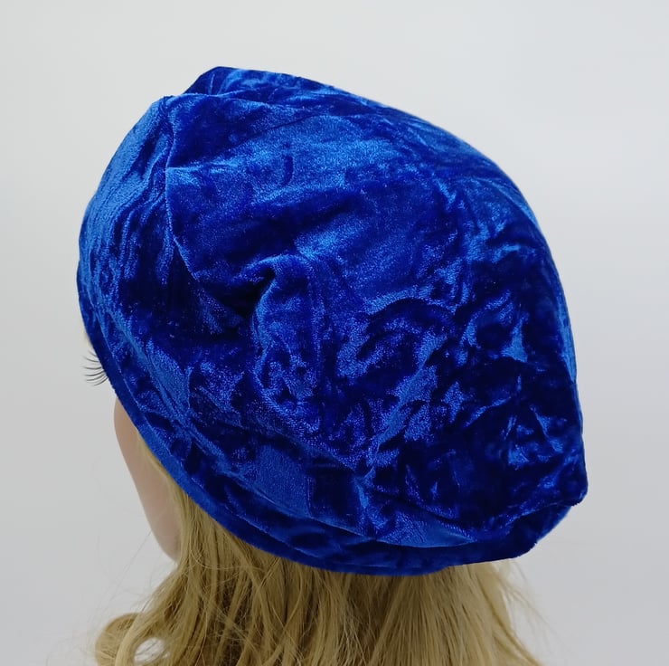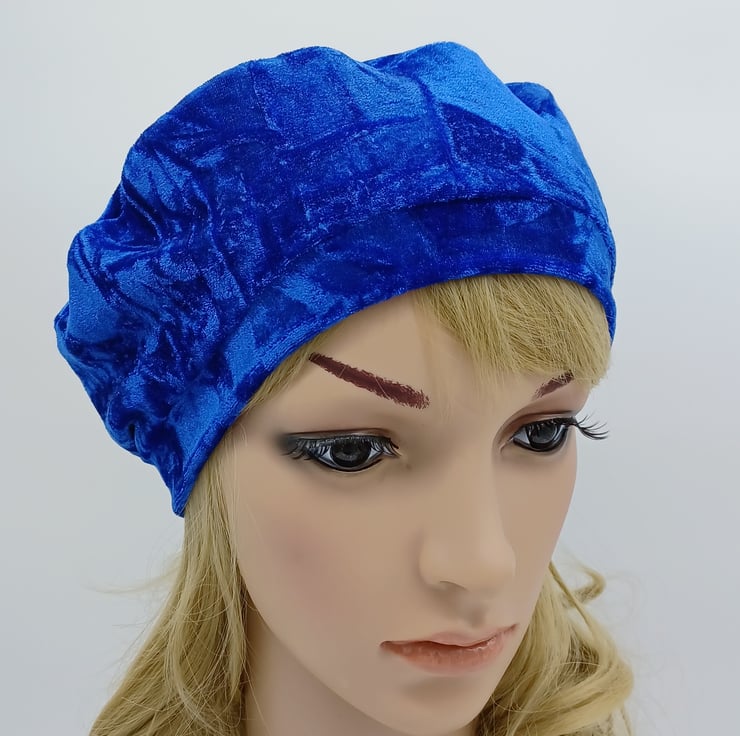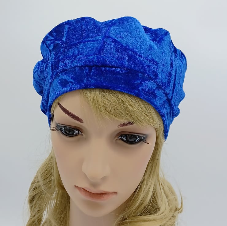 Royal blue crushed velvet beret, lined tam, spring autumn french style hat.