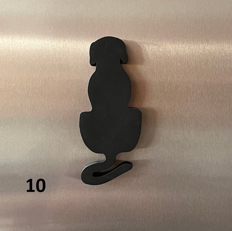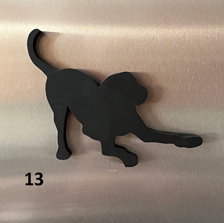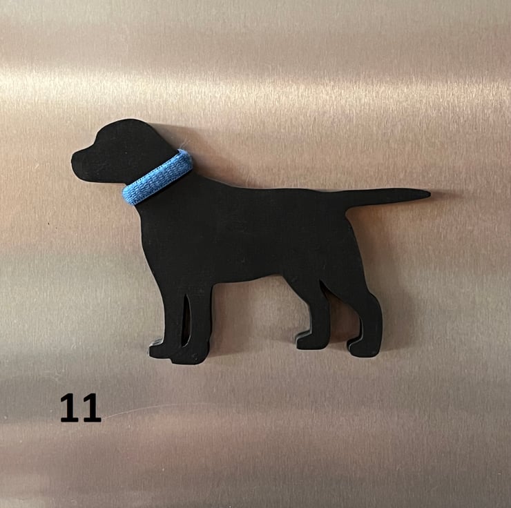 Black labrador fridge magnets in a variety of different poses. Each dog is fitted with a super strong neodymium magnet, which means it whont slide down the fridge door!