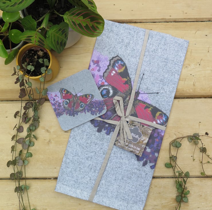 Peacock butterfly tea towel