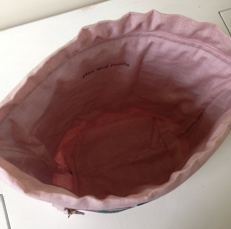 Covered in beautiful garden birds and fully lined in beautiful pink fabric.