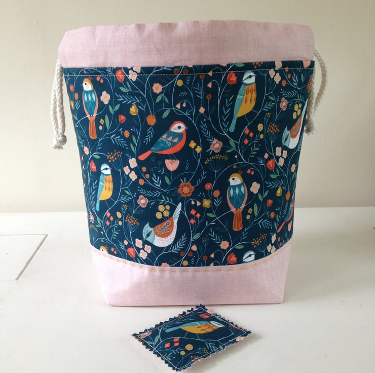 A cute project bag is all part of the fun for me and when I found this adorable bird fabric I just knew it would be perfect for a little bag.