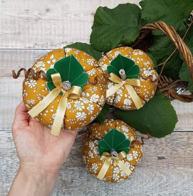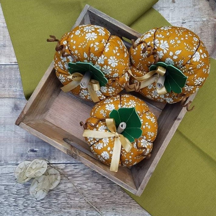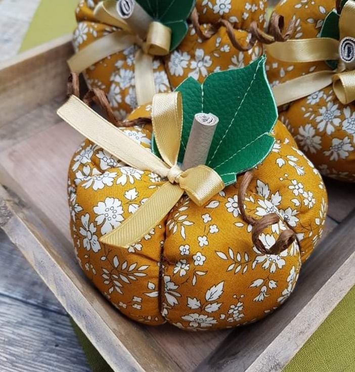 These pretty Liberty print mustard capel fabric pumpkins would make a lovely accessory for your home this autumn, adding a splash of seasonal colour to your fireplace, mantle or any shelf. Or, why not display them all year through (!?)