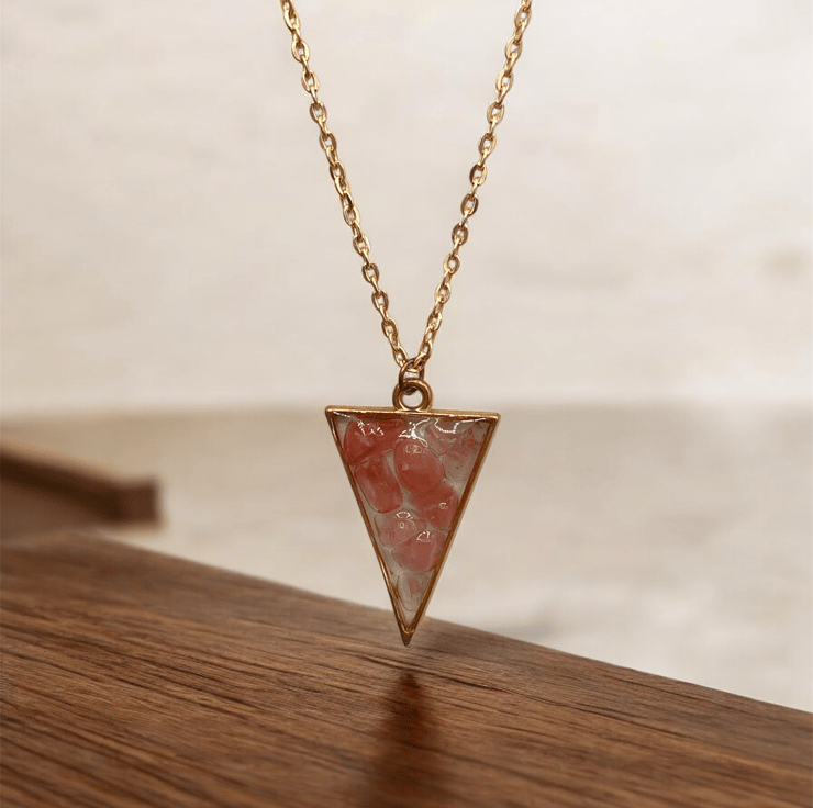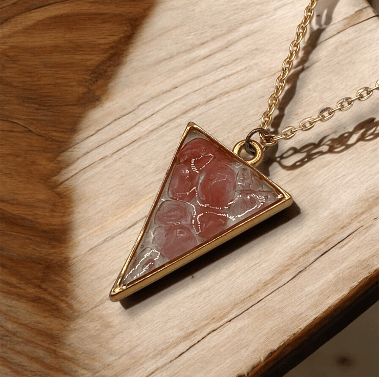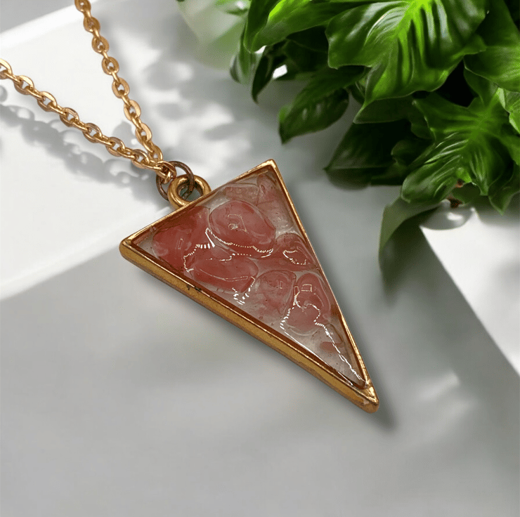 Strawberry Quartz Rose Gold plated Triangle Worry Stone Necklace - Free Postage