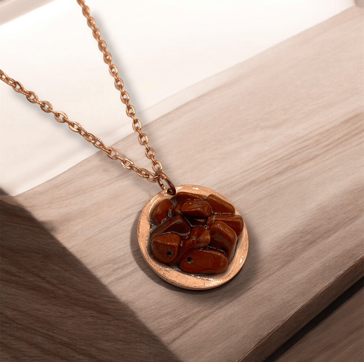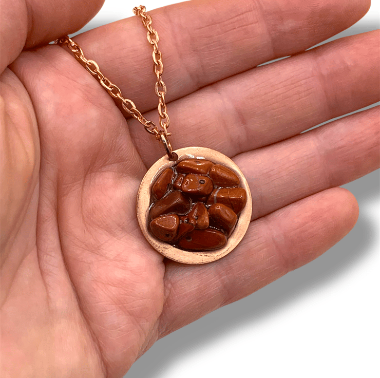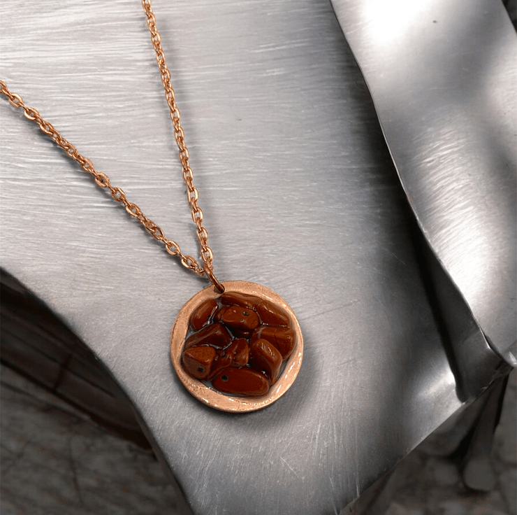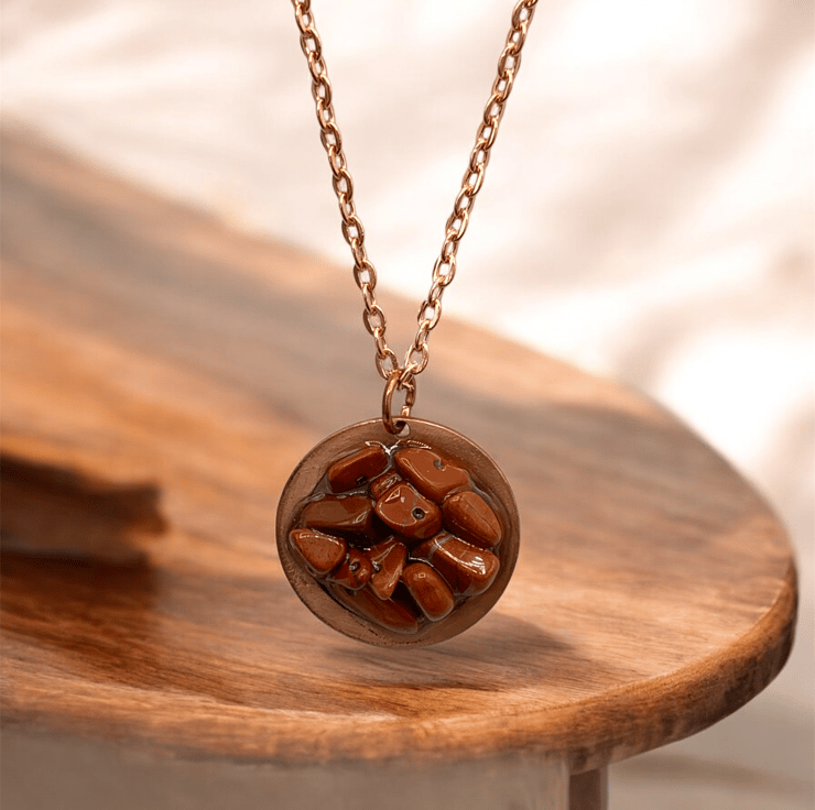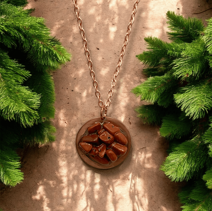 Elevate your style with this bold Red Jasper & copper geode inspired pendant! This powerful gemstone is known for its grounding properties and ability to inspire stability and courage. Perfect for those with an Aries zodiac sign. Stand out and embrace your inner strength with this stunning piece!