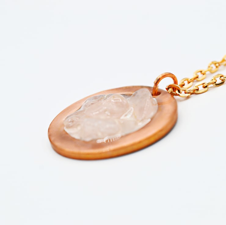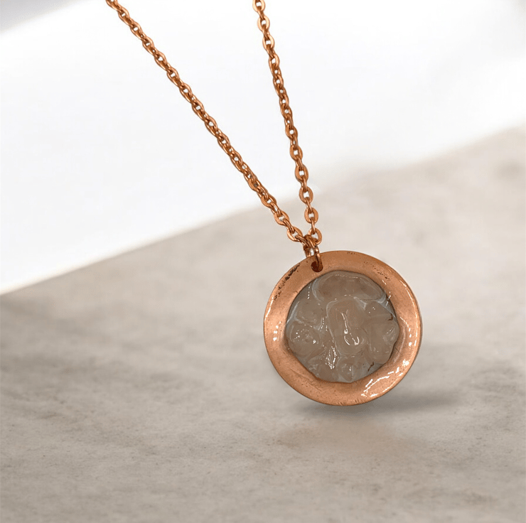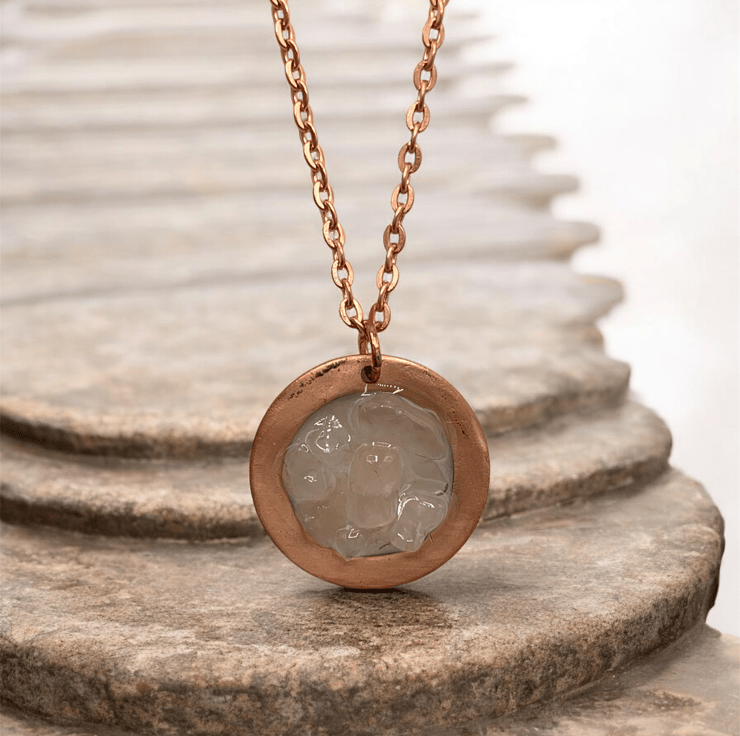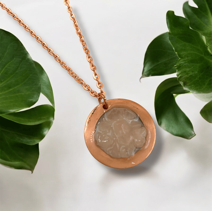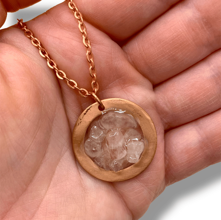Rose Quartz Crystal Pendant - Copper Geode Designed for Heart Chakra Balance